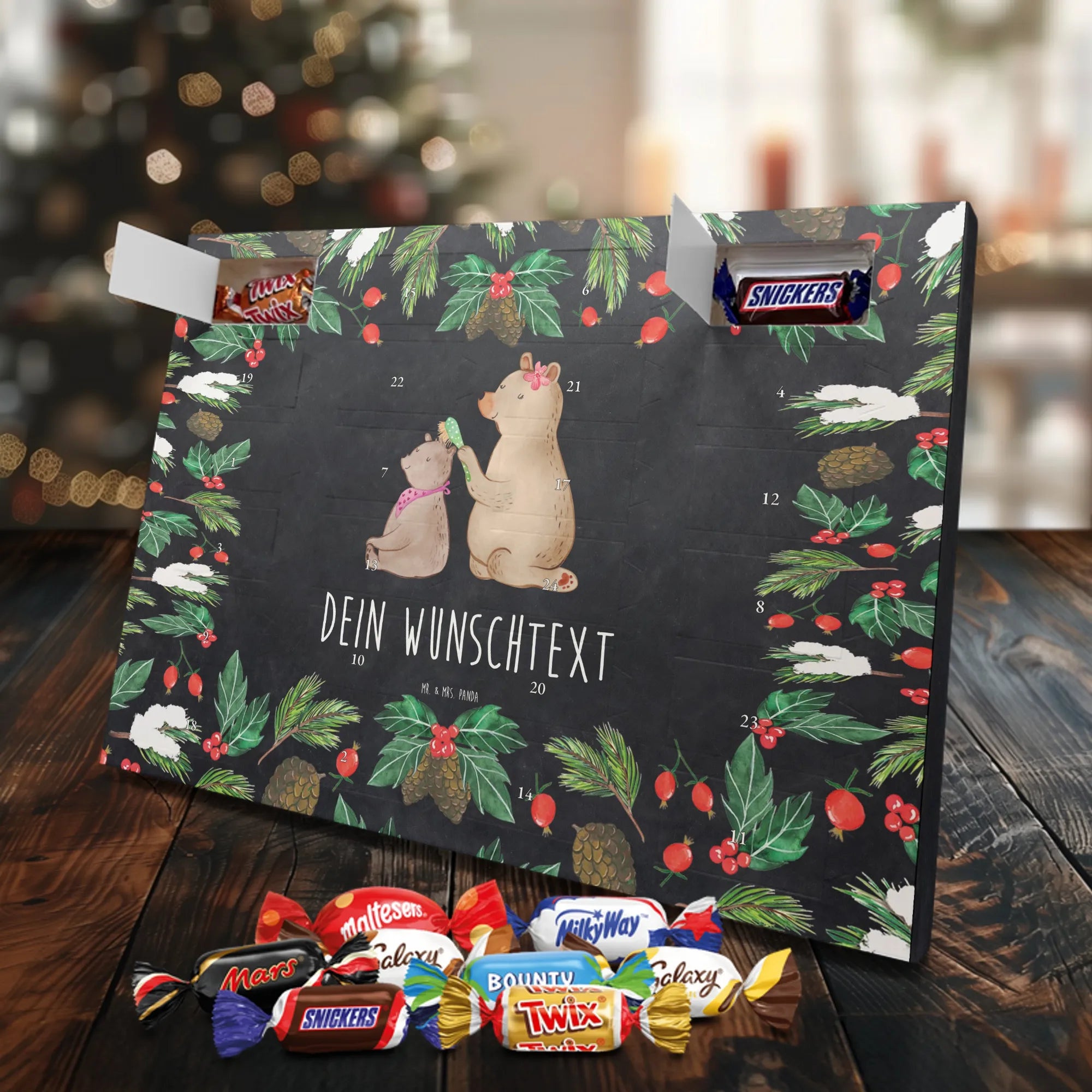 Hol dir Weihnachtszauber: Gestalte jetzt deinen personalisierten Schoko Adventskalender von Mr. & Mrs. Panda und verschenke jeden Tag ein Lächeln!