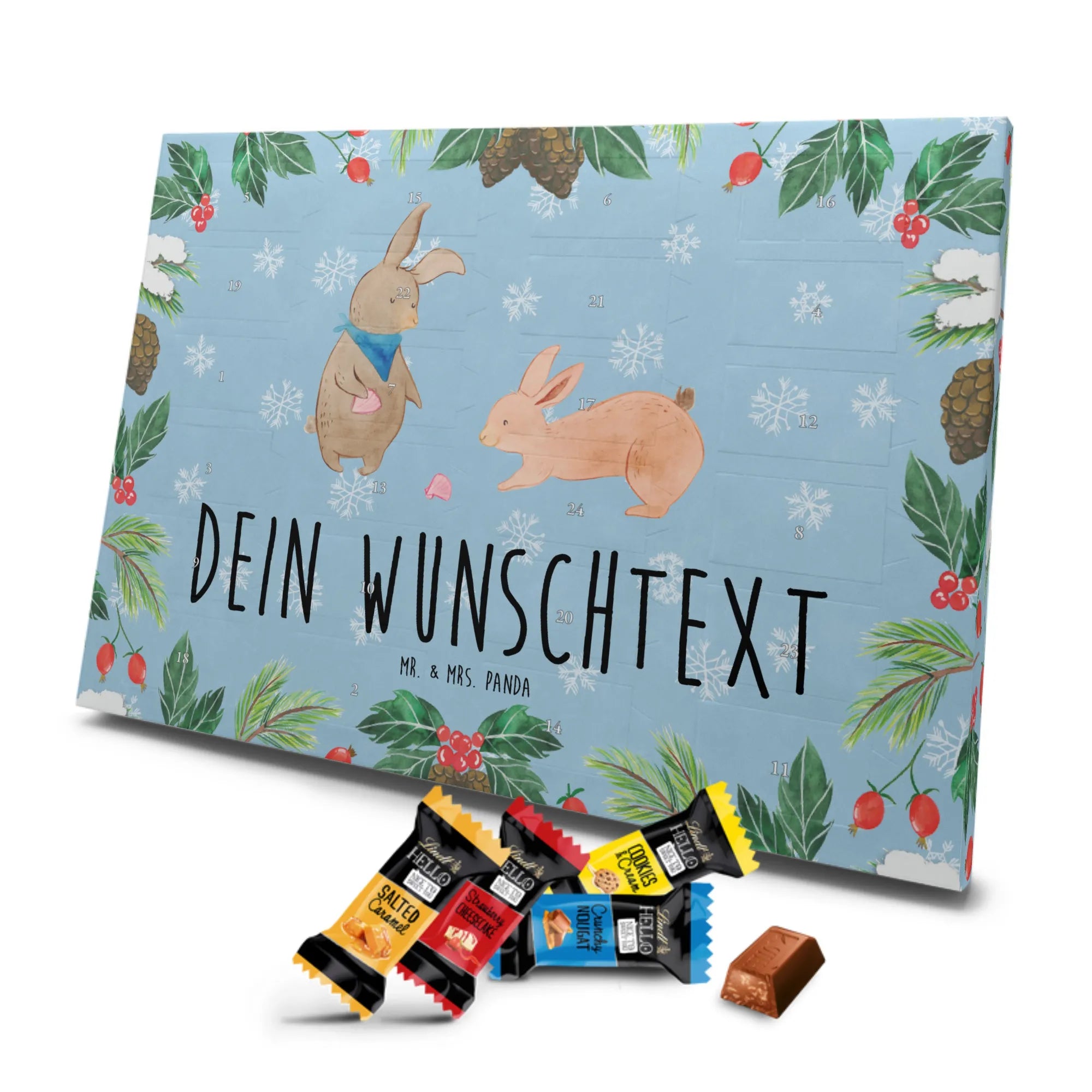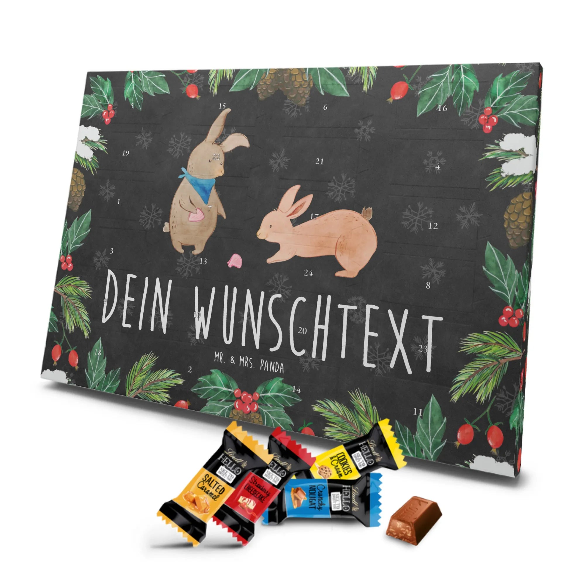 🐼 Adventskalender mit Namen, Mr. & Mrs. Panda Druck, gefüllt mit Lindt Hello.