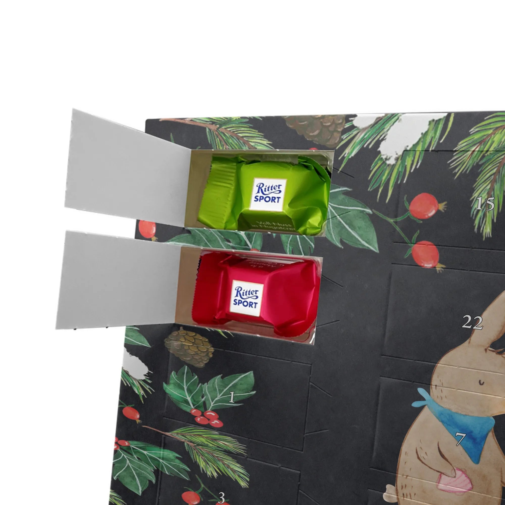 🐼 Personalisierter Schoko Adventskalender, seidenmatt und mit Ritter Sport Schokowürfeln.