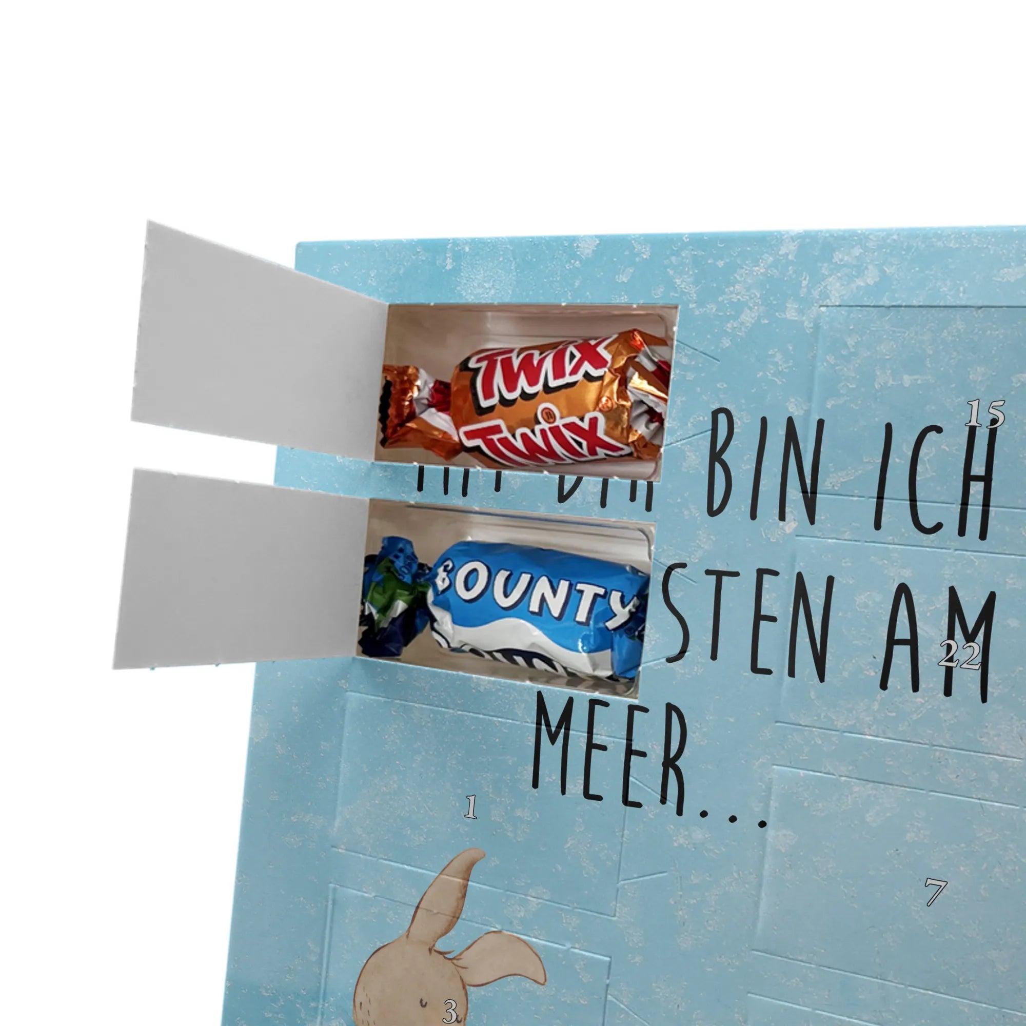 Personalisierter Schoko Foto Adventskalender Hasen Muschel - Lindt LINDOR - Eisblau