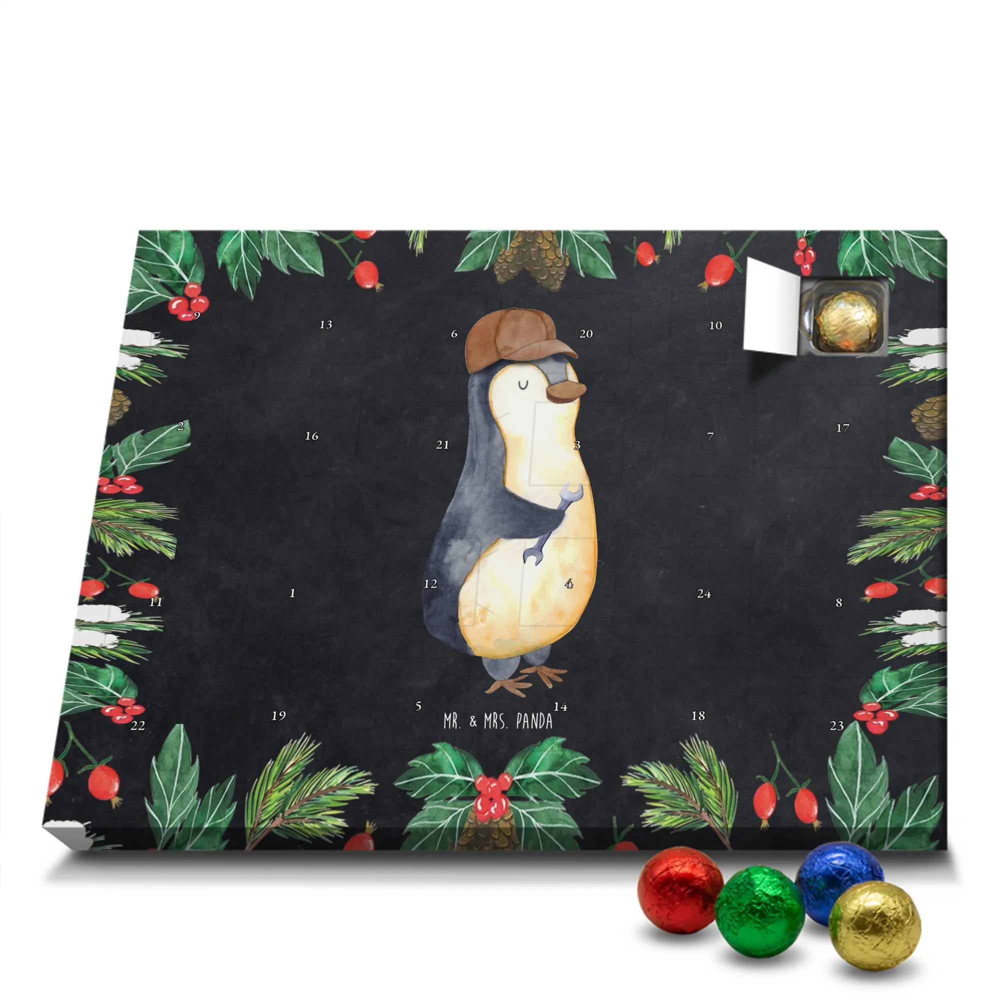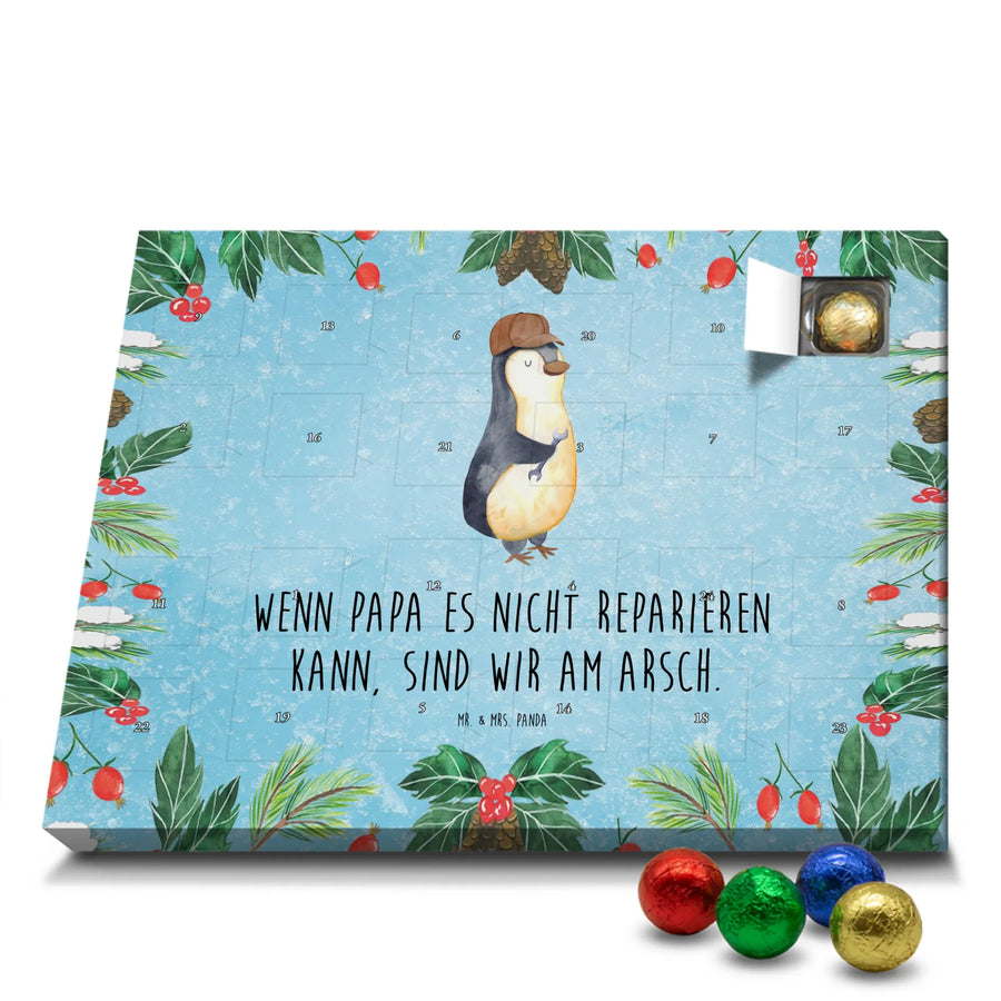 Dieses besondere Schokoladen Adventskalender-Motiv zeigt einen charmanten Pinguin mit brauner Kappe und Schraubenschlüssel – und den frechen Spruch „Wenn Papa es nicht reparieren kann, sind wir am Arsch.“. Perfekt als Geschenk Papa, als Vatertags Geschenk oder als süße Überraschung in der Adventszeit. Der Kalender zaubert ein Lächeln auf das Gesicht vom besten Papa der Welt und ist ein tolles Geschenk Vatertag oder Familien-Goodie.