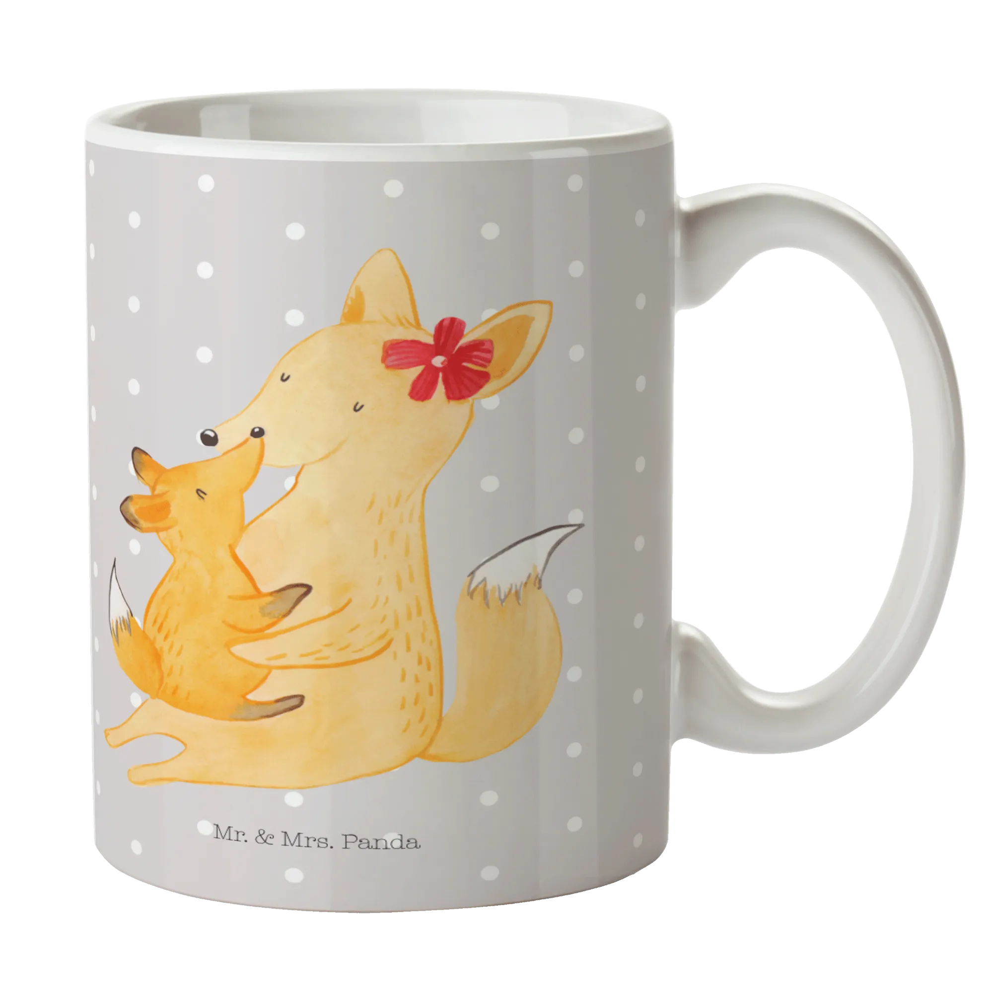 Tasse Fuchs Mama & Kind - mit Spruch - Grau Pastell