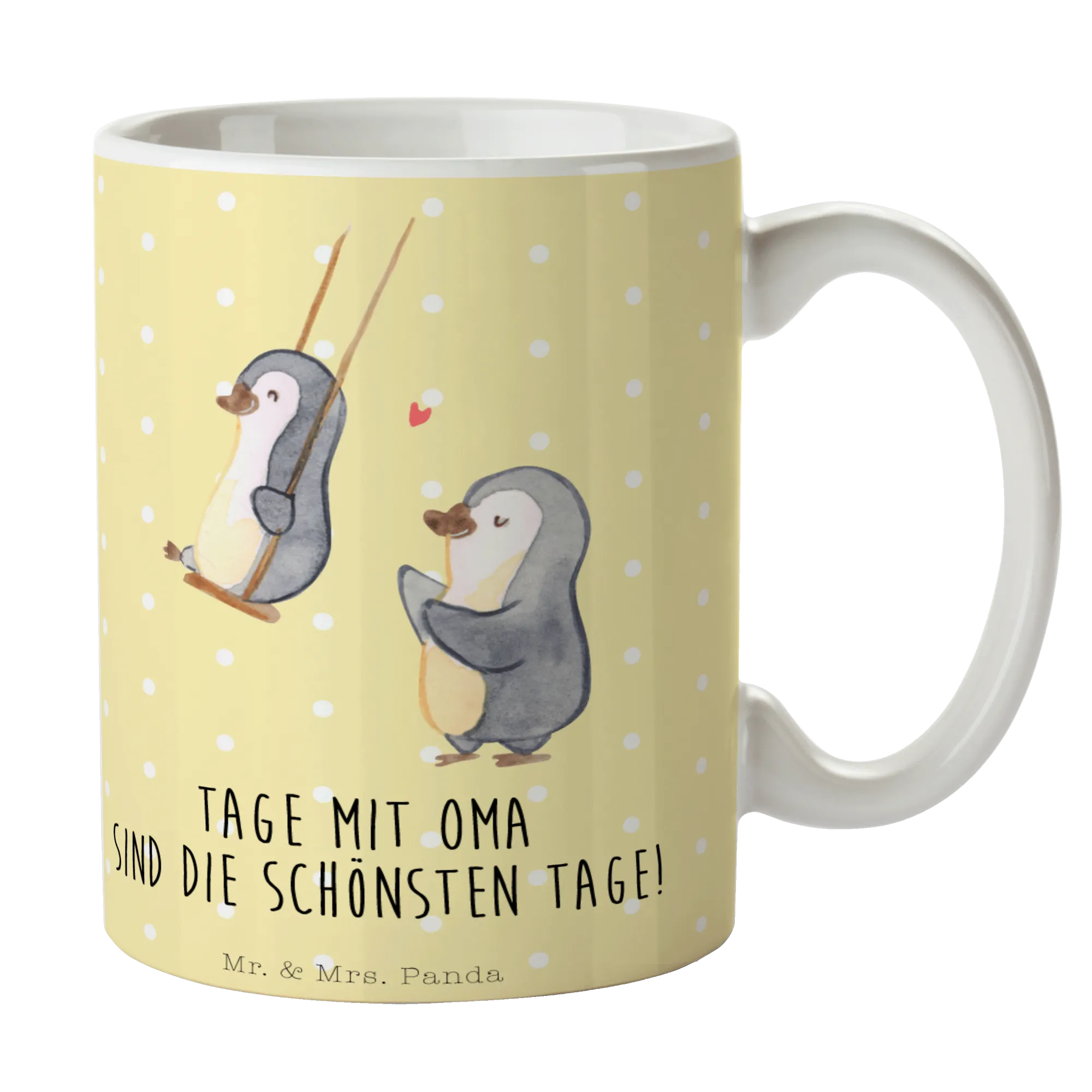 Geschenktasse Pinguin Oma schaukeln - Gelb Pastell