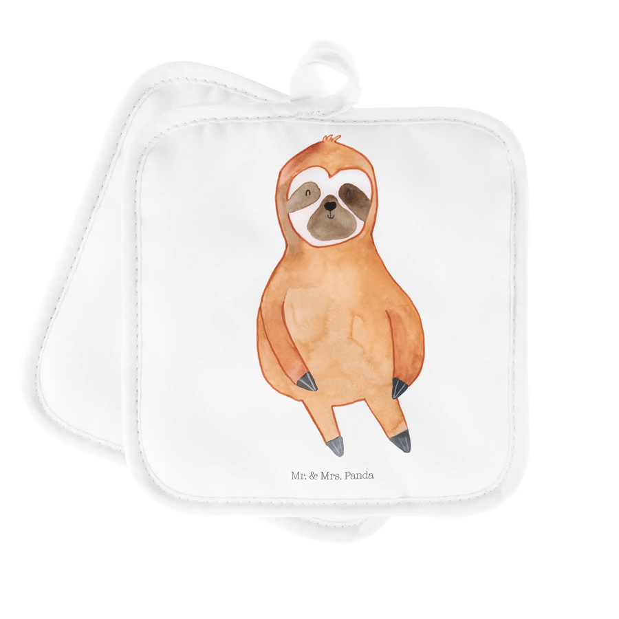 2er Set Topflappen Faultier Zufrieden - ohne Spruch - Weiß