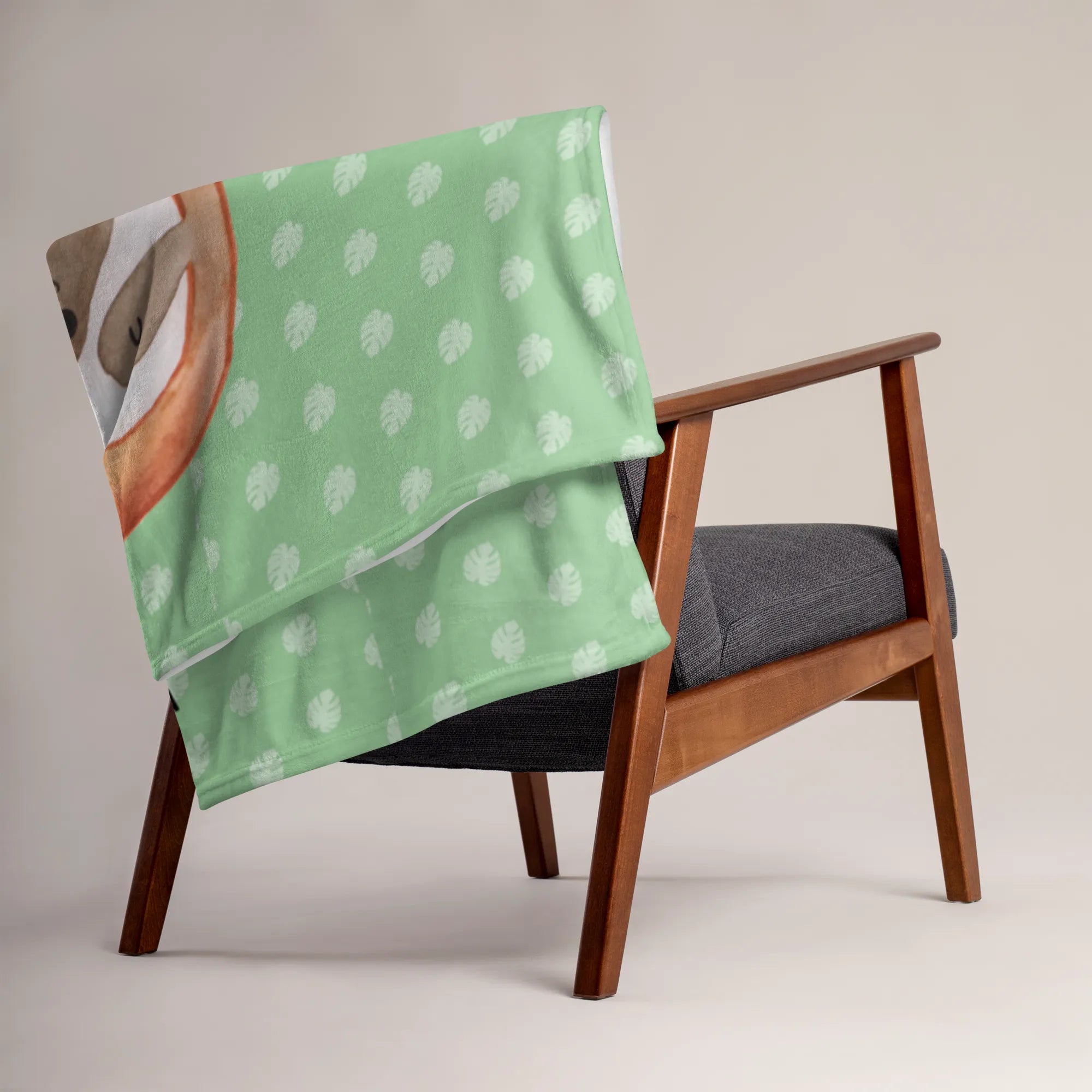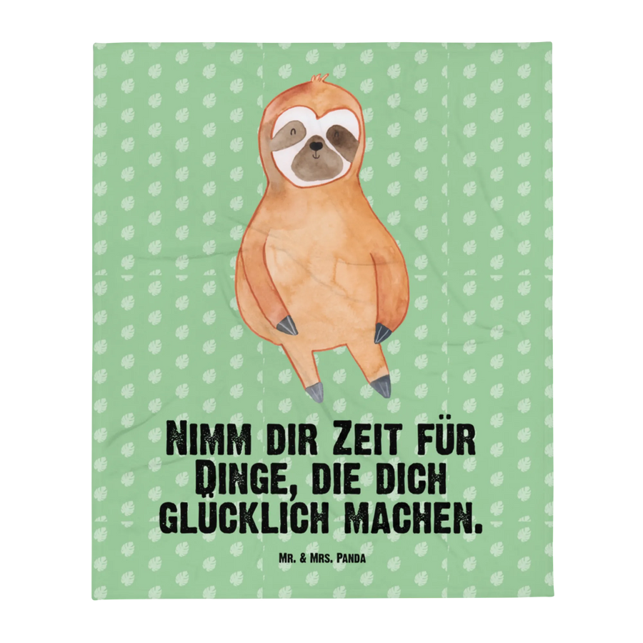 Babydecke Faultier Zufrieden - mit Spruch - Tropengrün