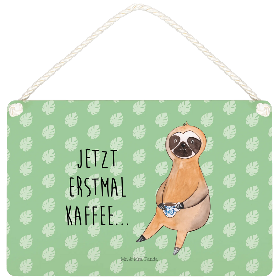 Die Faultier-Kollektion von Mr. & Mrs. Panda umfasst die niedlichsten Designs und Sprüche, die mit viel Liebe zum Detail geschaffen wurden. Der Slogan ‘Jetzt erstmal Kaffee...' fügt dem Schild eine humorvolle Note hinzu und spricht all diejenigen an, die wissen, wie wichtig der erste Kaffee am Morgen ist.