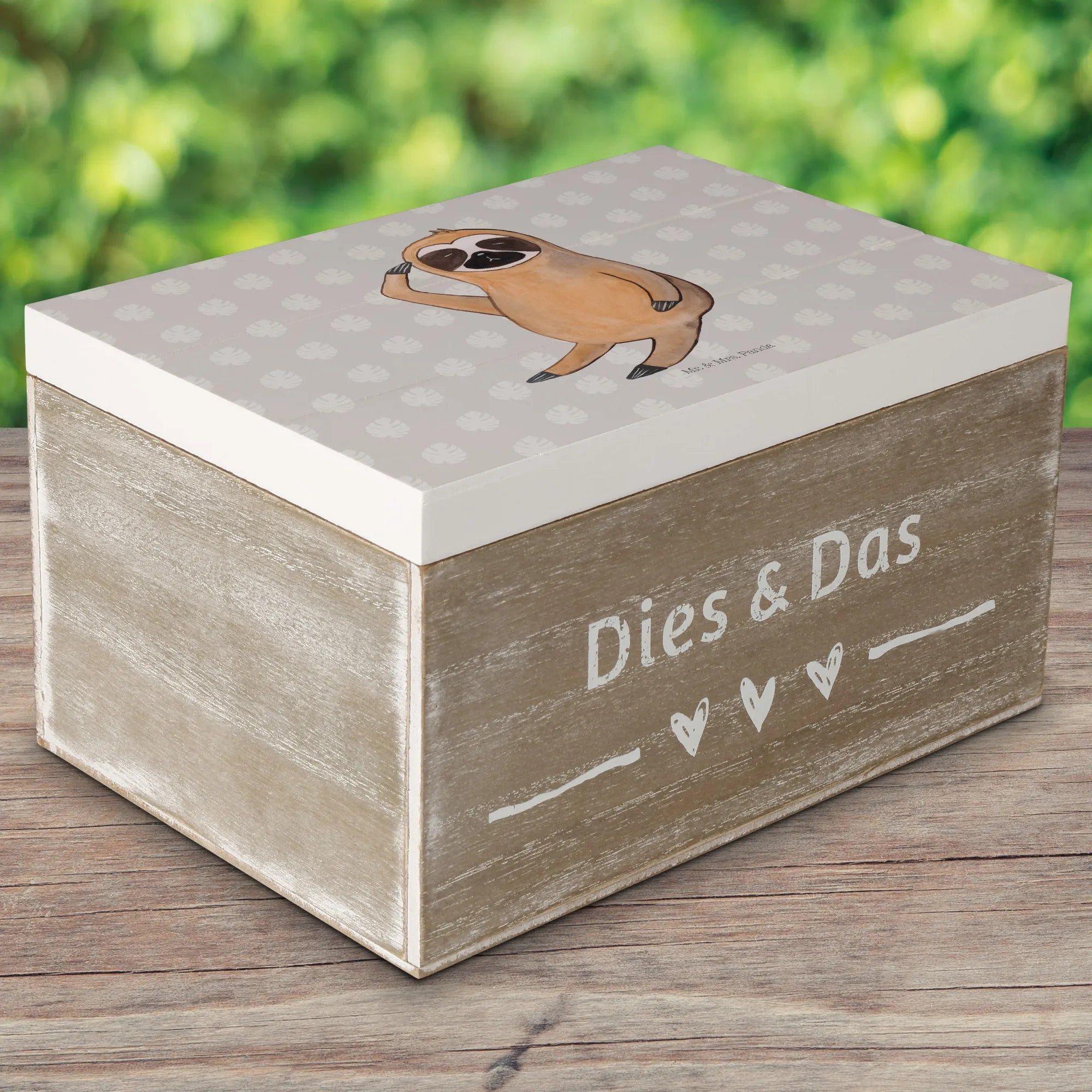 Entdecke unsere wunderschöne Holzkiste aus der Faultier-Kollektion von Mr. & Mrs. Panda! Diese einzigartige Kiste, bedruckt mit einem niedlichen Faultier, das sich an die Schläfe tippt, ist der perfekte Aufbewahrungsort für all deine wertvollen Erinnerungen oder Schätze.
