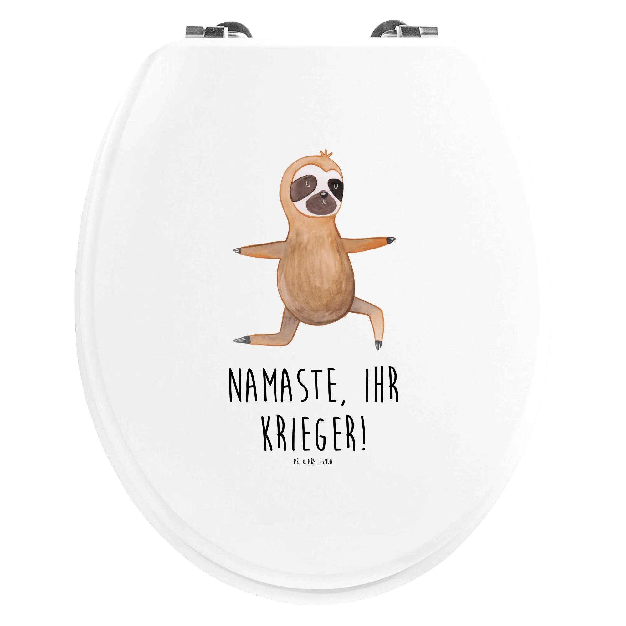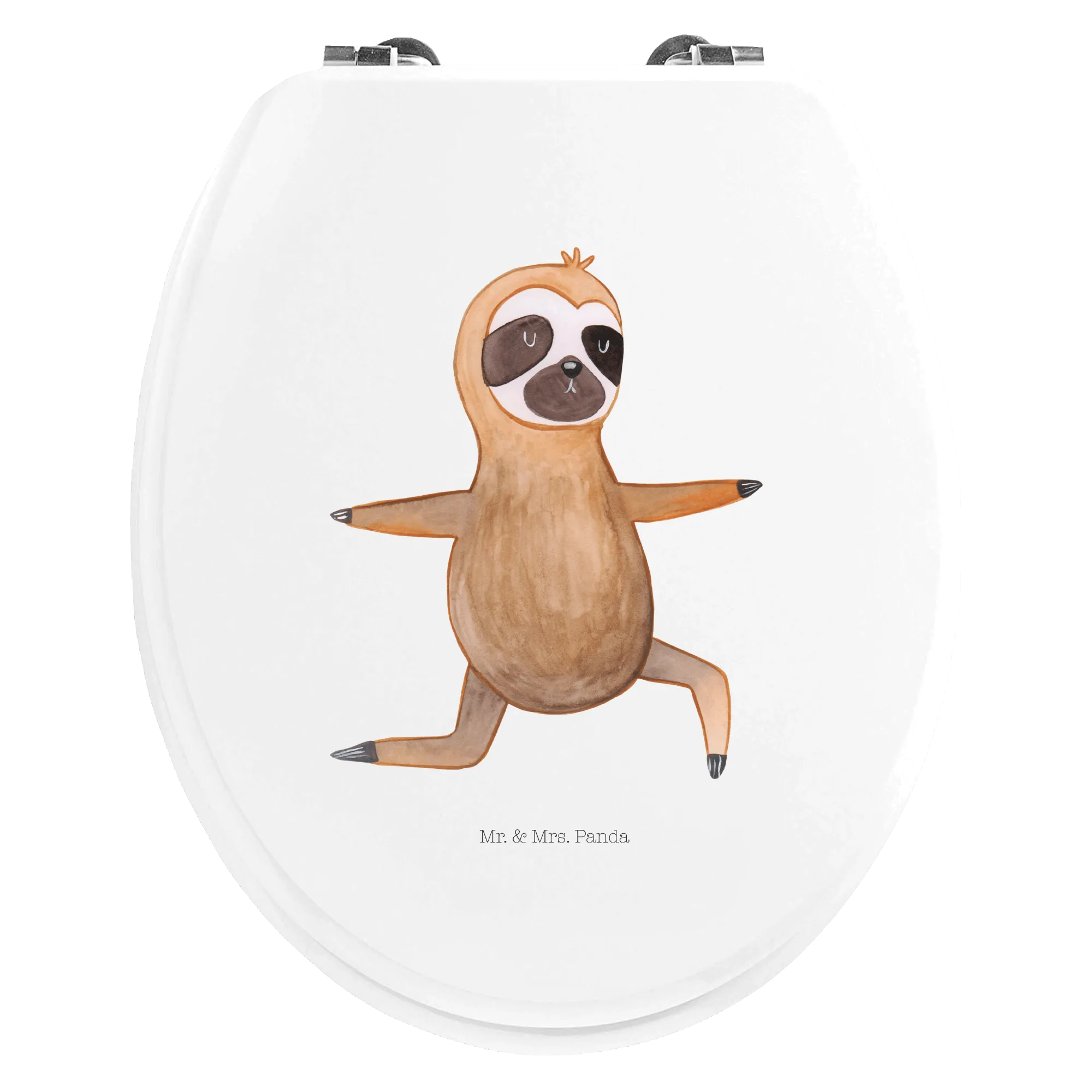 Wohlfühl-Design fürs Badezimmer: Der Motiv WC Sitz aus der Faultier - Kollektion von Mr. & Mrs. Panda verwandelt Dein Badezimmer in einen Ort der Entspannung und Lebensfreude. Das süße Faultier sitzt in der Yoga-Figur des Kriegers und strahlt Ruhe und Gelassenheit aus. Das farbenfrohe, handgezeichnete Motiv ist ein echter Blickfang und bringt Humor und Wärme in jeden Raum.