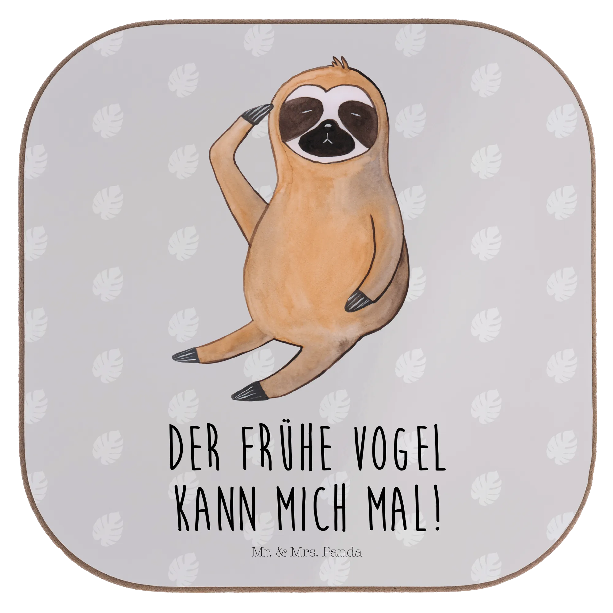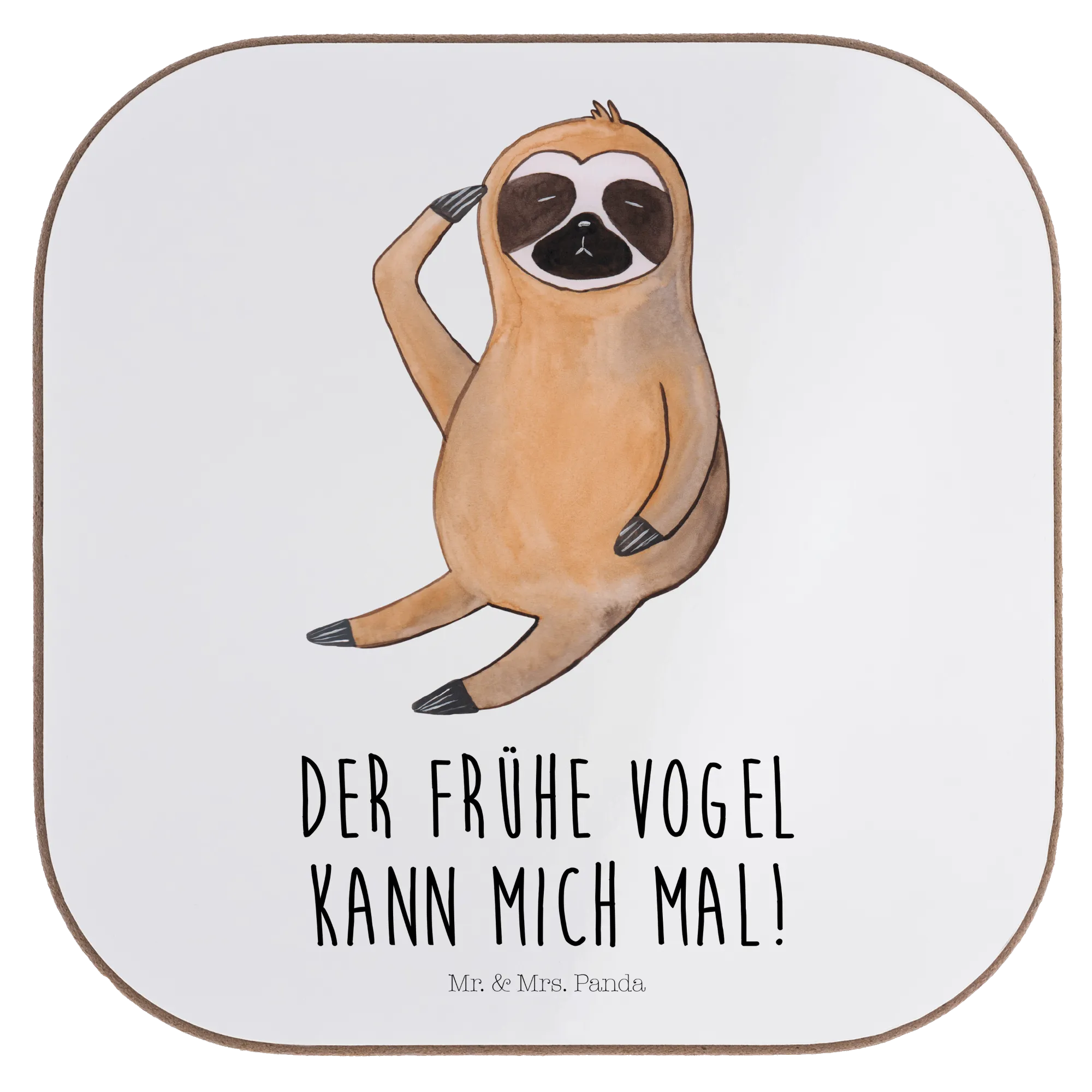 Wenn du ein einzigartiges Geschenk für Faultier-Liebhaber suchst, sind die Untersetzer aus der Faultier Kollektion von Mr. & Mrs. Panda genau das Richtige! Diese wunderschönen quadratischen Untersetzer sind nicht nur praktisch, sondern auch unglaublich charmant. Mit dem liebevoll handgezeichneten Motiv eines verwunderten Faultiers, das sich an die Schläfe tippt, bringen sie ein Stück Faultierwelt direkt zu dir nach Hause. Der Spruch "Der frühe Vogel kann mich mal!" sorgt für ein Lächeln am Morgen und macht sie zum perfekten Tischzubehör für Frühaufsteher und Morgenmuffel gleichermaßen.