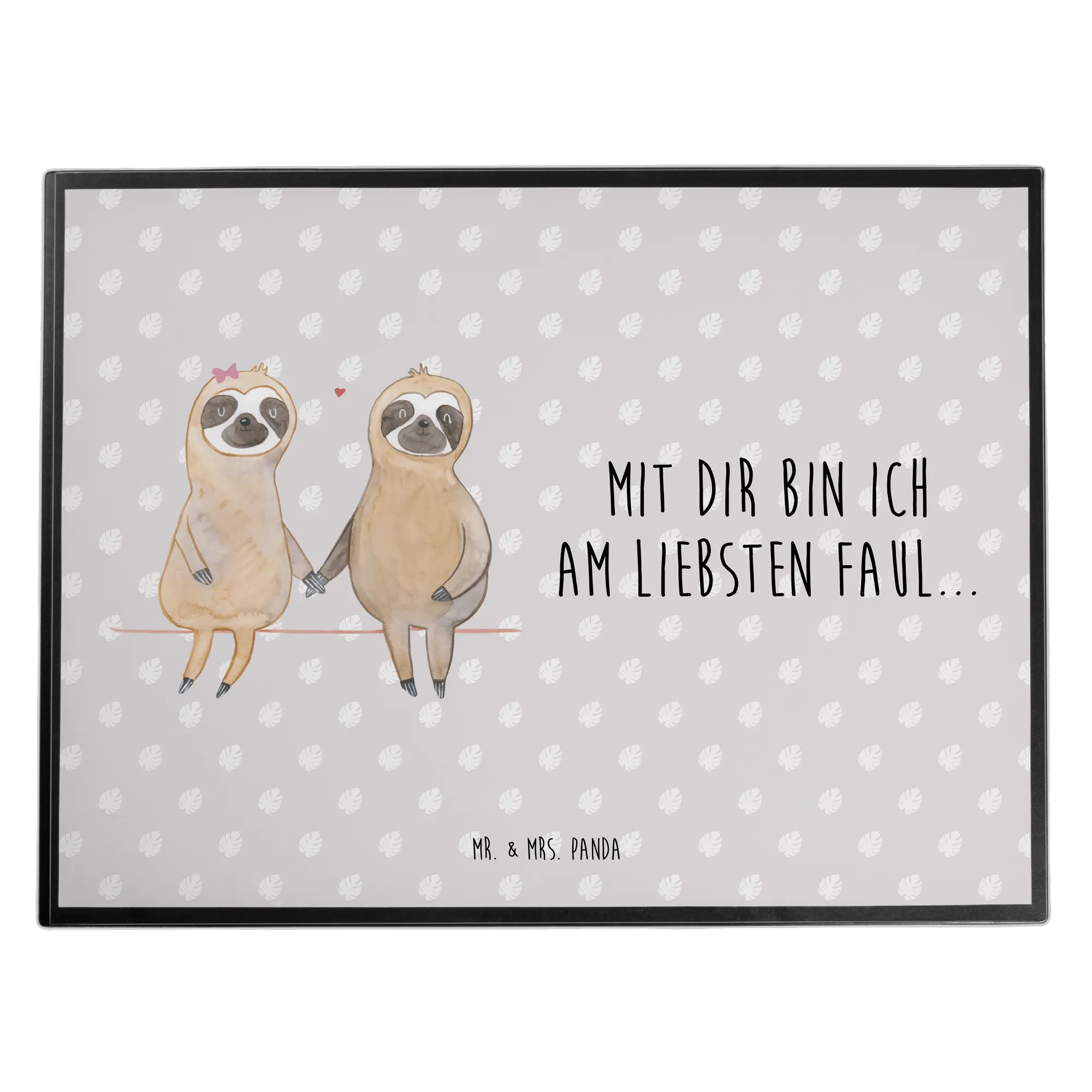 Träume süß und produktiv mit der Schreibtischunterlage Faultier Pärchen von Mr. & Mrs. Panda! Diese wunderschöne und arbeitsfreundliche Schreibtischunterlage ist perfekt für dein Zuhause, das Büro oder jeden Arbeitsplatz. Mit ihrem liebevollen Design zeigt sie ein süßes Faultierpaar, das sich an den Händen hält und ganz nach dem Motto "Mit dir bin ich am Liebsten faul..." jedes Mal ein Lächeln auf dein Gesicht zaubert.