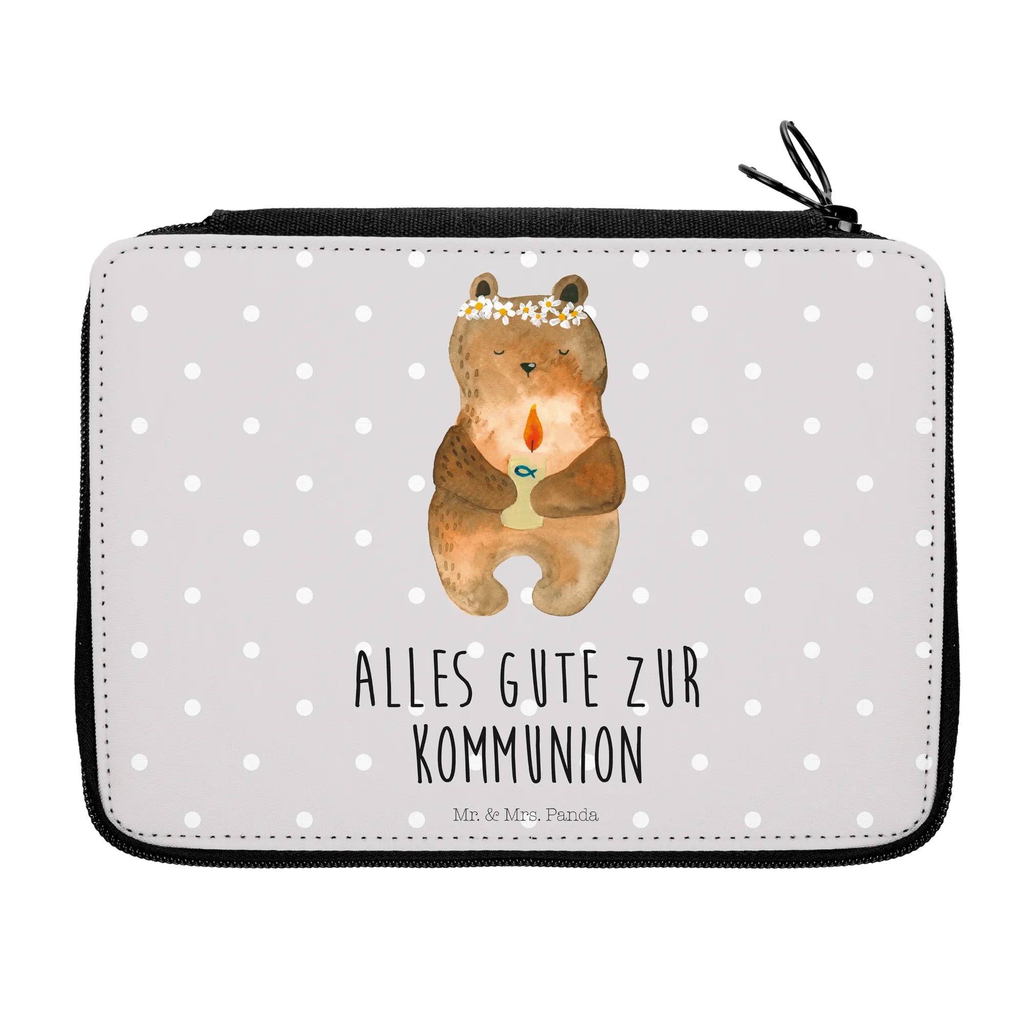 Mit der Aufschrift "Alles Gute zur Kommunion" ist die Federmappe ein einzigartiges Accessoire für jeden Schüler und jede Schülerin. Ihr strahlendes Design mit dem süßen Bären, der eine Kerze in der Hand hält und mit einer Blumenkrone geschmückt ist, symbolisiert den besonderen Tag und die Hoffnung, die mit der Kommunion verbunden ist.