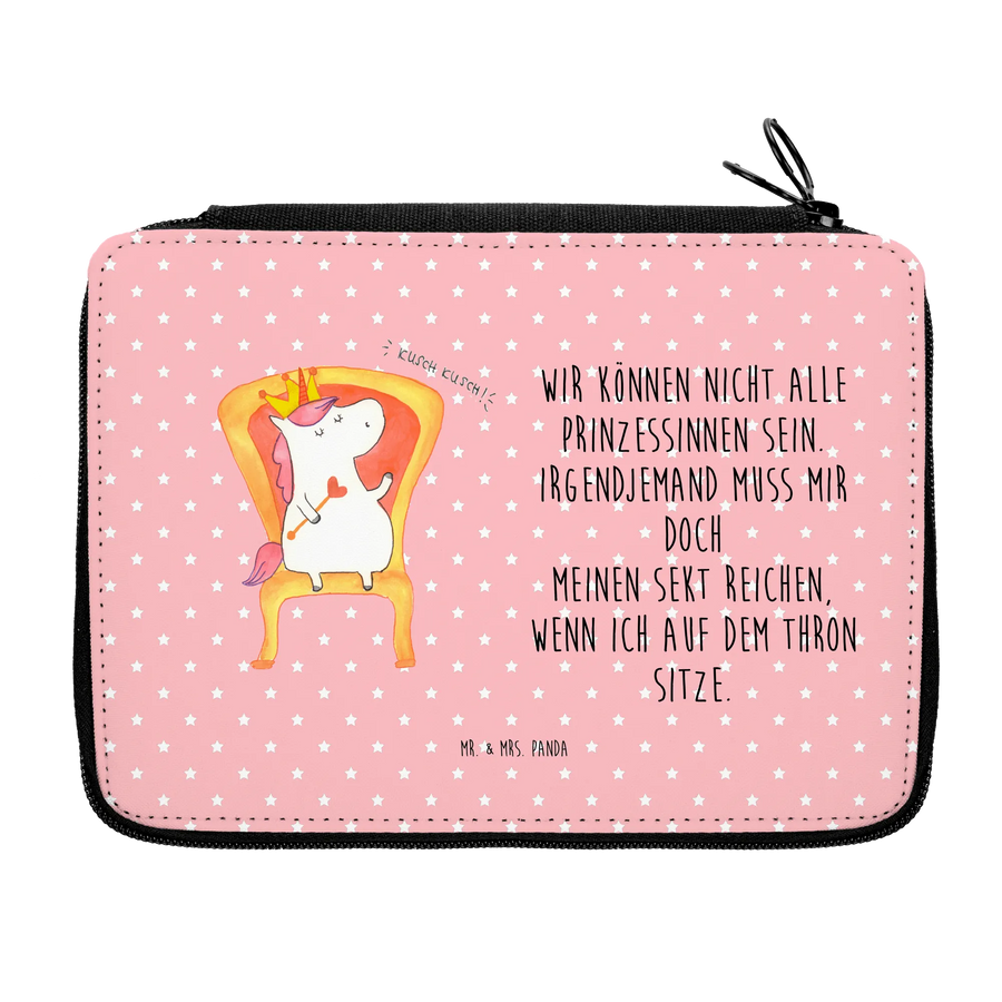 Die wunderschöne Federmappe "Einhorn König" von Mr. & Mrs. Panda ist das perfekte Geschenk für alle kleinen Prinzessinnen und Einhorn-Fans. In strahlenden Farben bedruckt, zeigt sie ein charmantes Einhorn mit einer Krone auf dem Kopf, das auf einem Thron sitzt und mit einem herzlichen Spruch zum Schmunzeln einlädt: "Wir können nicht alle Prinzessinnen sein. Irgendjemand muss mir doch meinen Sekt reichen, wenn ich auf dem Thron sitze." Perfekt für die Schule, die Federmappe misst 210 mm x 210 mm x 40 mm und ist mit hochwertigen Materialien aus Baumwolle und Kunstfaser gefertigt.