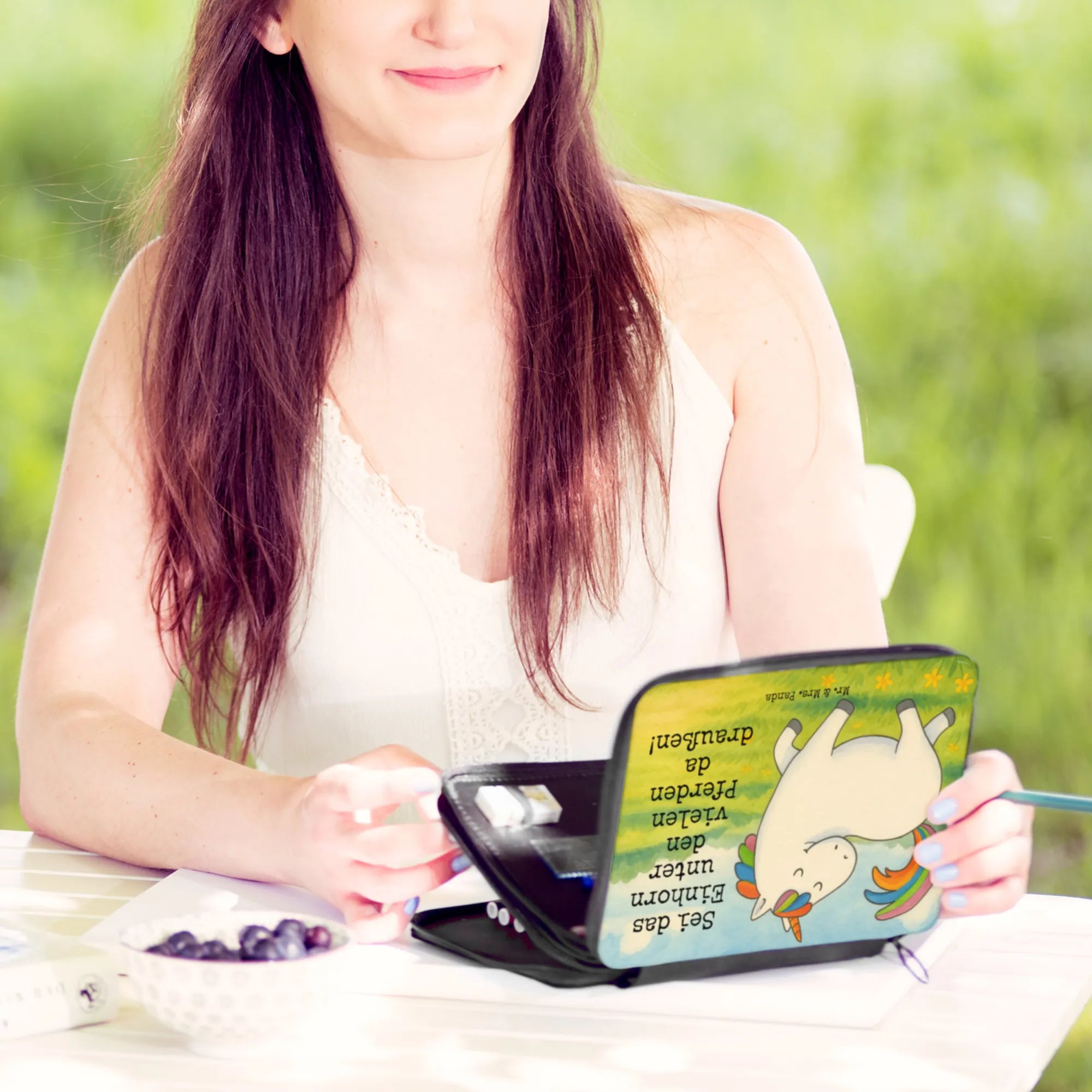 Die wunderschöne Federmappe von Mr. & Mrs. Panda kombiniert Funktionalität mit kreativem Design. Mit großzügigen Abmessungen von 210 mm x 210 mm x 40 mm bietet sie Platz für all deine Schreibutensilien und lässt sich dank des leichten Gewichts von 383 g bequem transportieren. Die Federmappe ist aus strapazierfähiger Baumwolle und hochwertigen Kunstfasern gefertigt und punktet mit leuchtenden Farben und inspirierenden Sprüchen. Ideal für die Schule oder als Geschenk, ist sie komplett ausgestattet mit Buntstiften, Filzstiften, Bleistiften, einem Lineal, einem Radiergummi und einem Spitzer. So bist du bestens für den Unterricht gerüstet. Zudem kann sie ganz einfach mit einem feuchten Lappen gereinigt werden, was sie besonders pflegeleicht macht. Ein absolutes Must-Have für Schulanfänger und kreative Köpfe!
