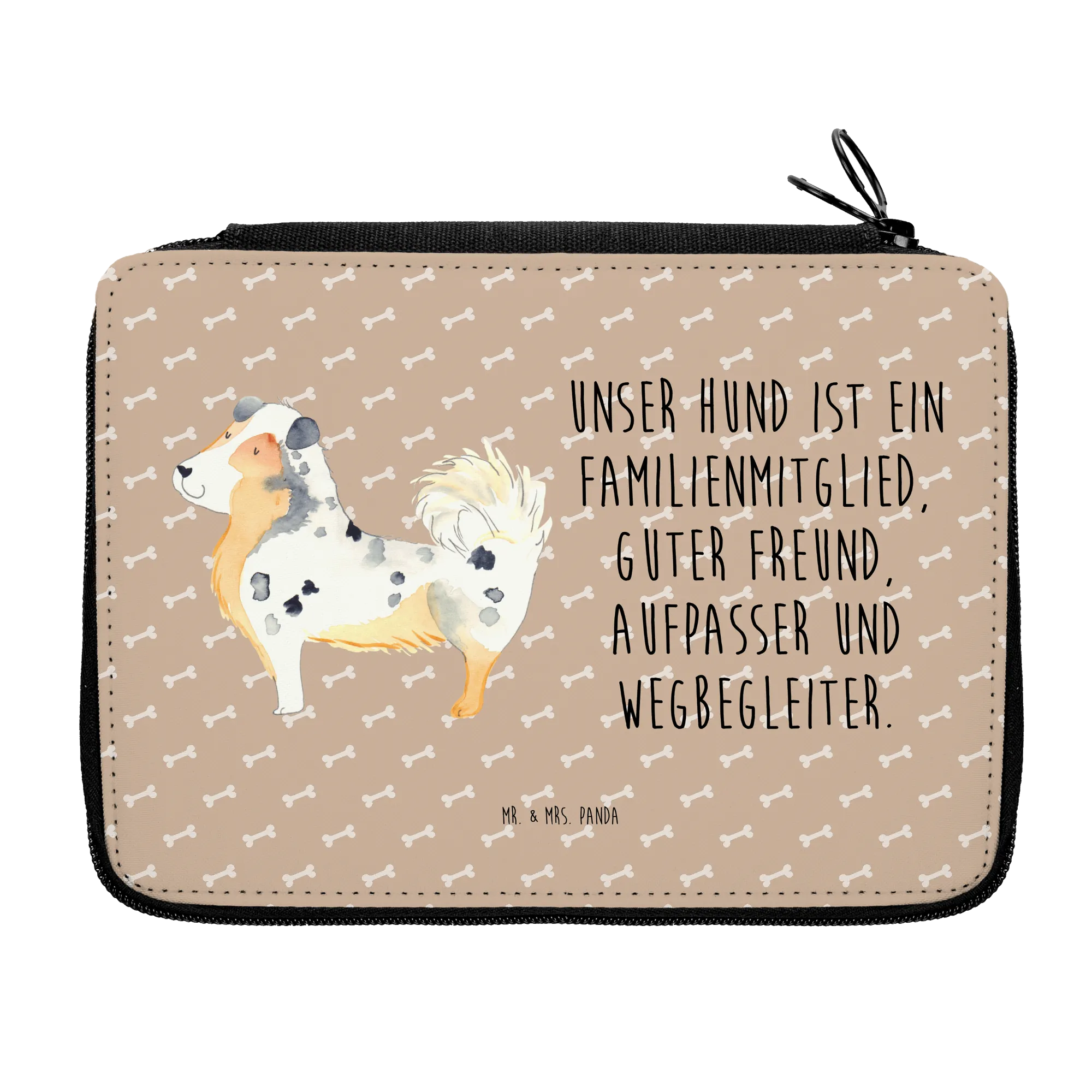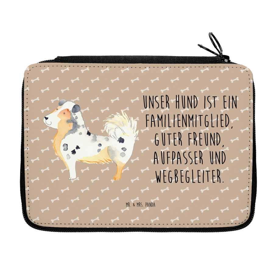 Entdecke die wunderschöne Federmappe von Mr. & Mrs. Panda, die speziell für all die kleinen Abenteurer in der Schule kreiert wurde! Mit ihrem charmanten Motiv eines Australian Shepherds und dem liebevollen Spruch "Unser Hund ist ein Familienmitglied, guter Freund, Aufpasser und Wegbegleiter." bringt sie nicht nur Freude ins Schulzimmer, sondern ist auch ein praktischer Begleiter für jeden Schüler oder jede Schülerin.