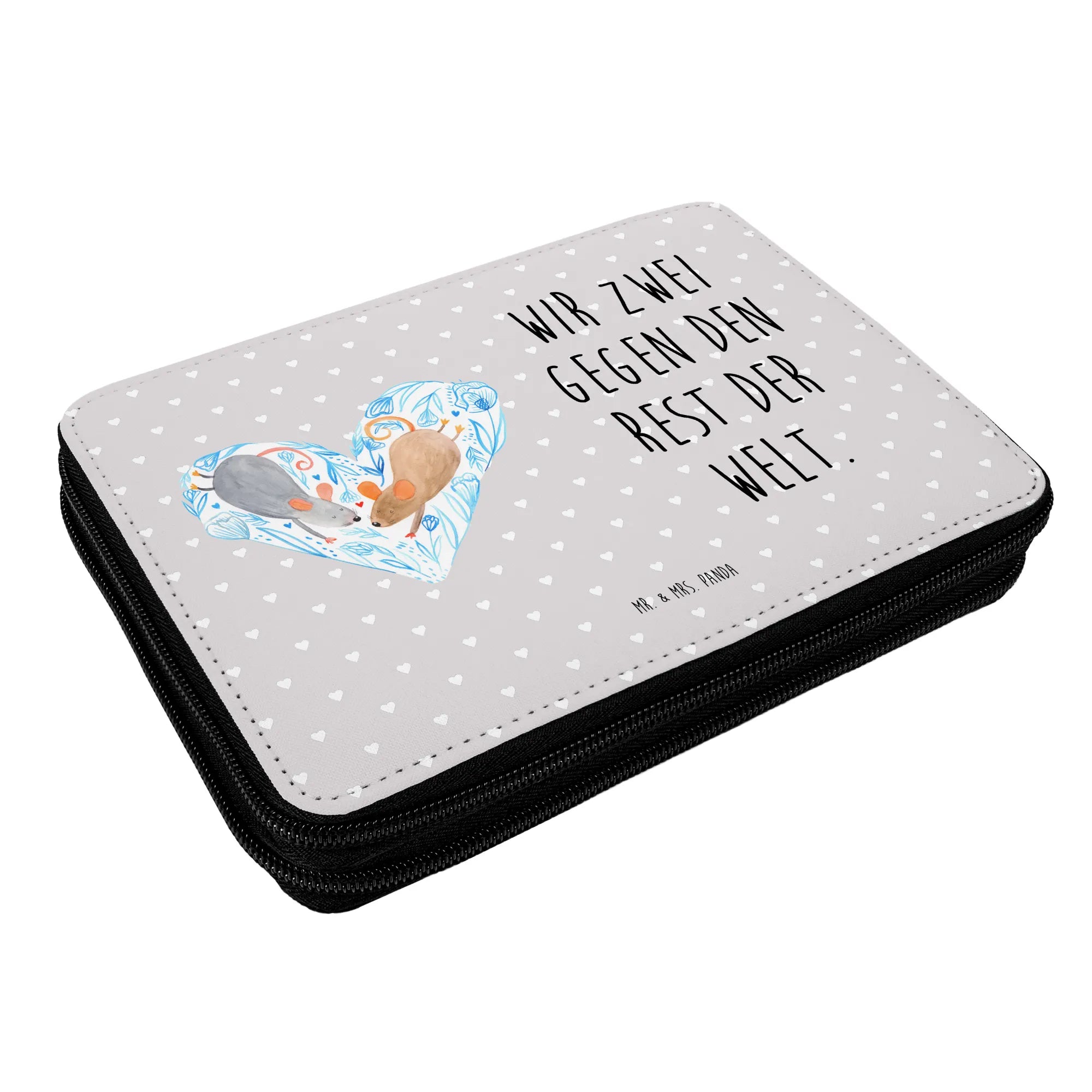 Die Federmappe "Mäuse Herz" von Mr. & Mrs. Panda ist das perfekte Geschenk für alle kleinen und großen Schulanfänger! Mit ihrem zauberhaften Motiv von zwei niedlichen Mäusen, die ein Herz bilden, bringt diese Federmappe Freude und Liebe in den Schulalltag.