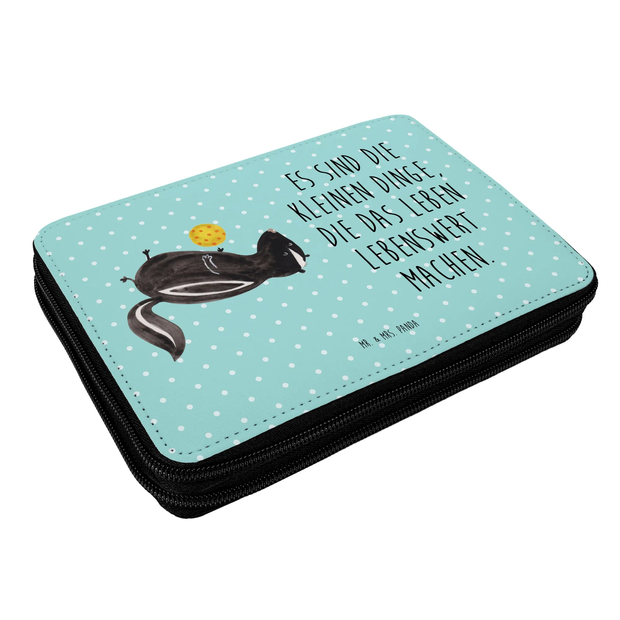 Die Federmappe "Stinktier Ball" aus der Stinktier-Kollektion von Mr. & Mrs. Panda ist das perfekte Geschenk für Schulkinder und Schüler, die mit Freude und Stil lernen wollen. Mit ihrem fröhlichen Stinktier-Motiv wird diese Federmappe die Herzen von kleinen und großen Fans begeistern.