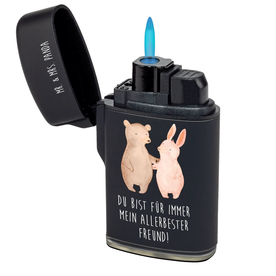 Suchst du nach dem perfekten Geschenk für deinen besten Freund oder deine beste Freundin? Unser Feuerzeug mit dem liebevollen Motiv 'Bär Hase Umarmen' aus der Kollektion Liebe von Mr. & Mrs. Panda ist die ideale Wahl! Es strahlt Wärme und Freundschaft aus und ist ein passendes Geschenk für jeden Anlass wie Jahrestage, Geburtstage oder sogar Hochzeiten.