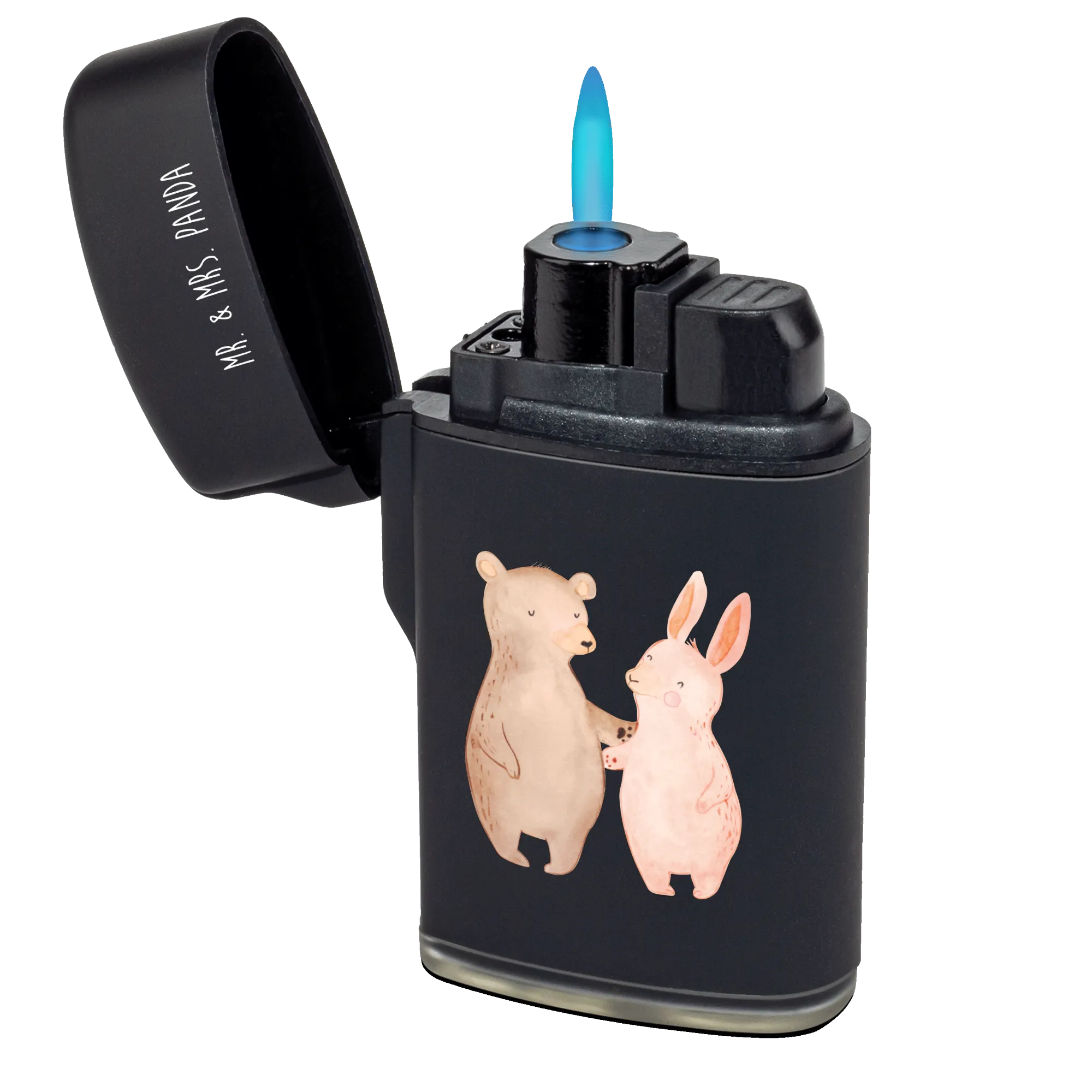 Dieses einzigartige Feuerzeug ist nicht nur funktional, sondern strahlt auch Herzlichkeit und Liebe aus. Das liebevolle Design zeigt einen Bären und einen Hasen, die sich innig umarmen – ein schöner Ausdruck von Freundschaft und Zuneigung.
