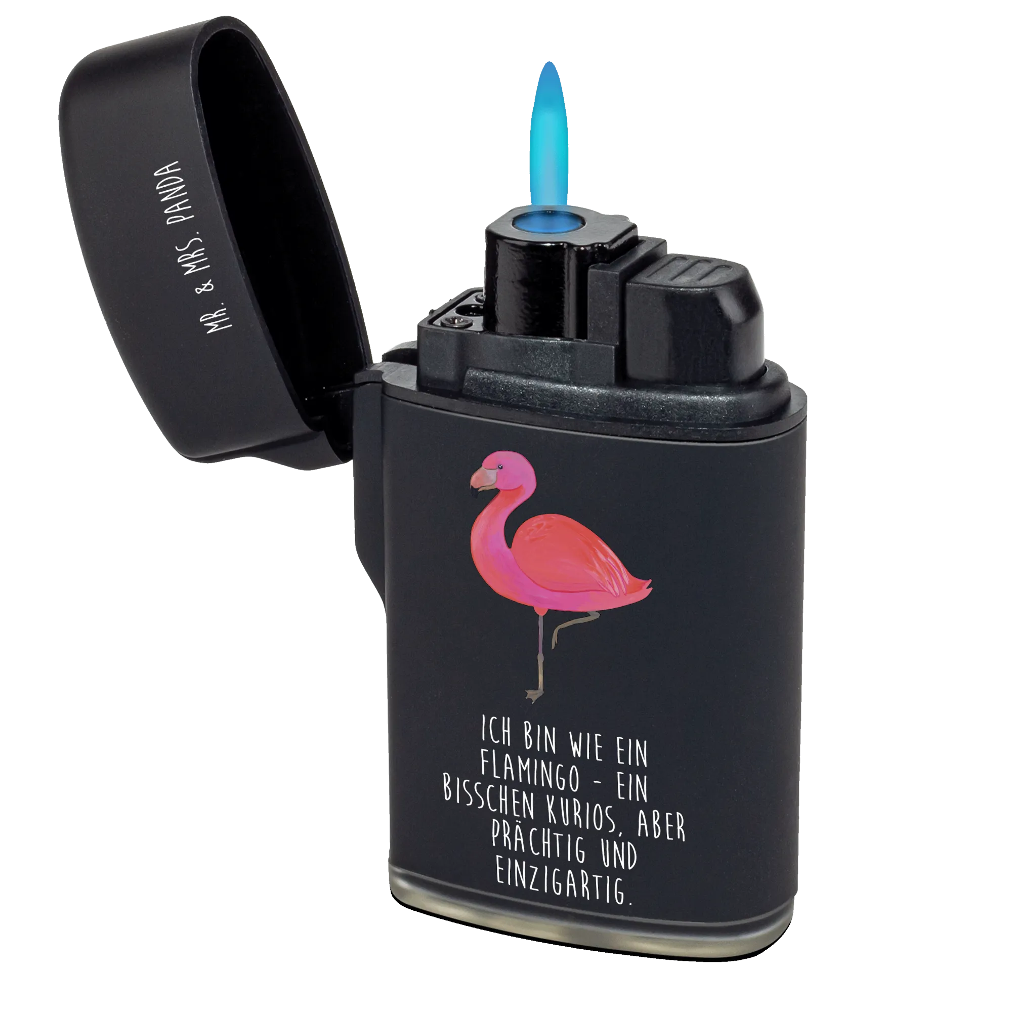 Entdecke das perfekte Feuerzeug mit Flamingo-Motiv von Mr. & Mrs. Panda! Dieses einzigartige Feuerzeug ist nicht nur ein praktischer Begleiter, sondern auch ein echter Hingucker mit seinem fröhlichen Design. Es trägt den Slogan "Ich bin wie ein Flamingo - ein bisschen kurios, aber prächtig und einzigartig" und ist damit ideal für all jene, die sich selbst oder ihren Freunden eine Freude machen möchten. Flamingos stehen für Sommer, Freiheit und Individualität - genau die richtigen Eigenschaften, die jeder in seinem Leben braucht!