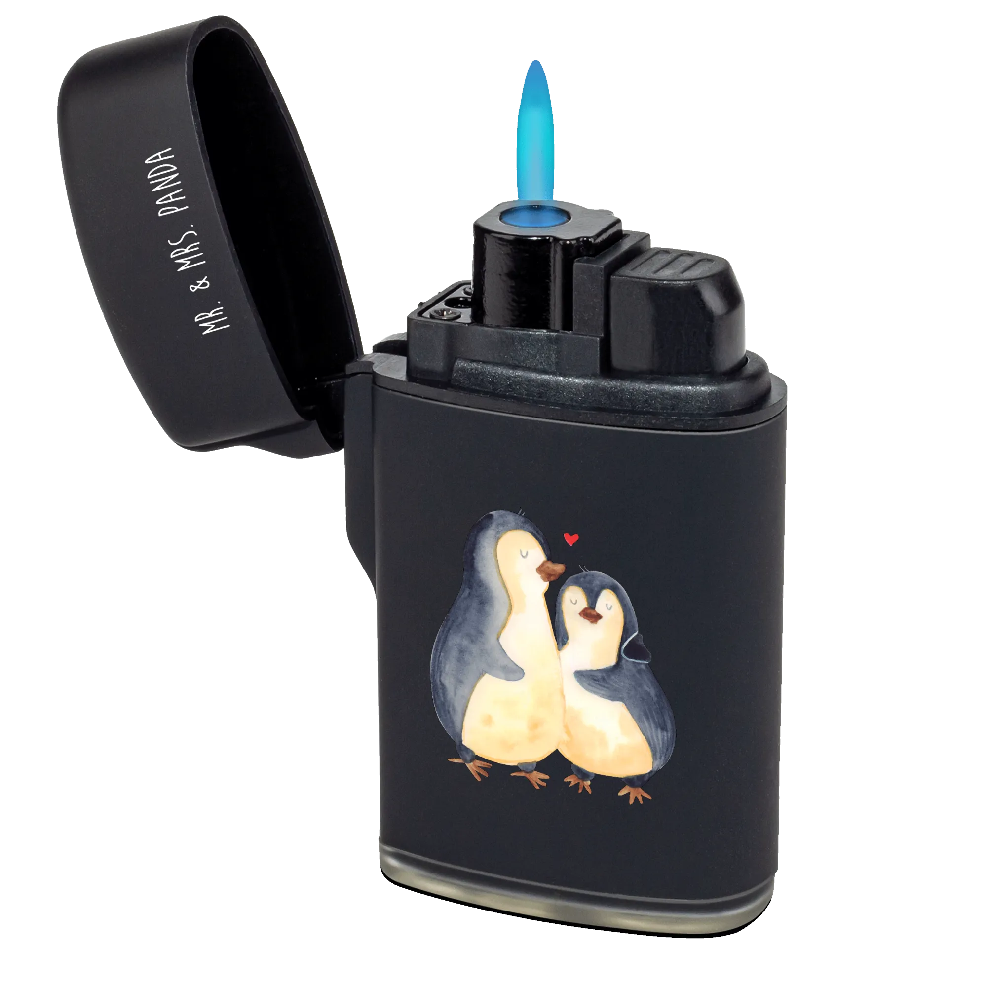 Ein einzigartiges Feuerzeug von Mr. & Mrs. Panda: Unser Feuerzeug „Pinguin umarmend“ aus der liebevollen Pinguin - Kollektion vereint Funktionalität und Herz. Das handgezeichnete Aquarellmotiv zeigt zwei Pinguine, bei denen einer seine Flosse schützend um den anderen legt – ein kleiner, täglicher Liebesbeweis.