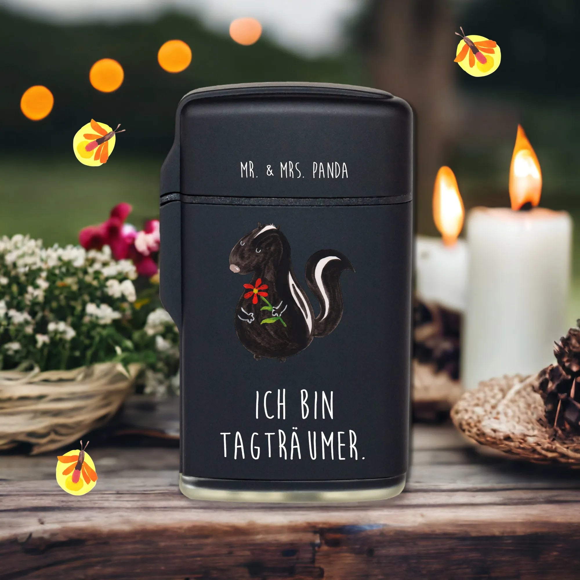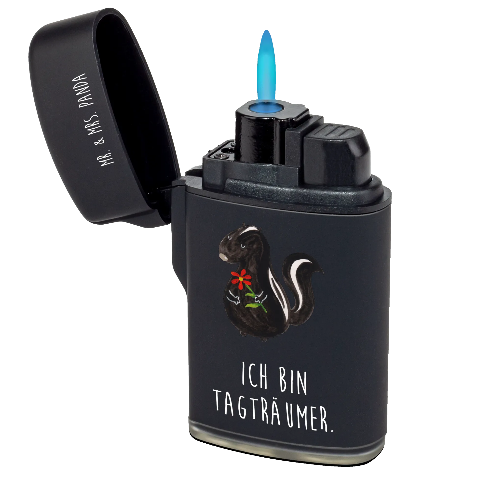 Das Feuerzeug Stinktier Blume aus der Stinktier-Kollektion von Mr. & Mrs. Panda ist das perfekte Geschenk für alle, die das Besondere lieben.
