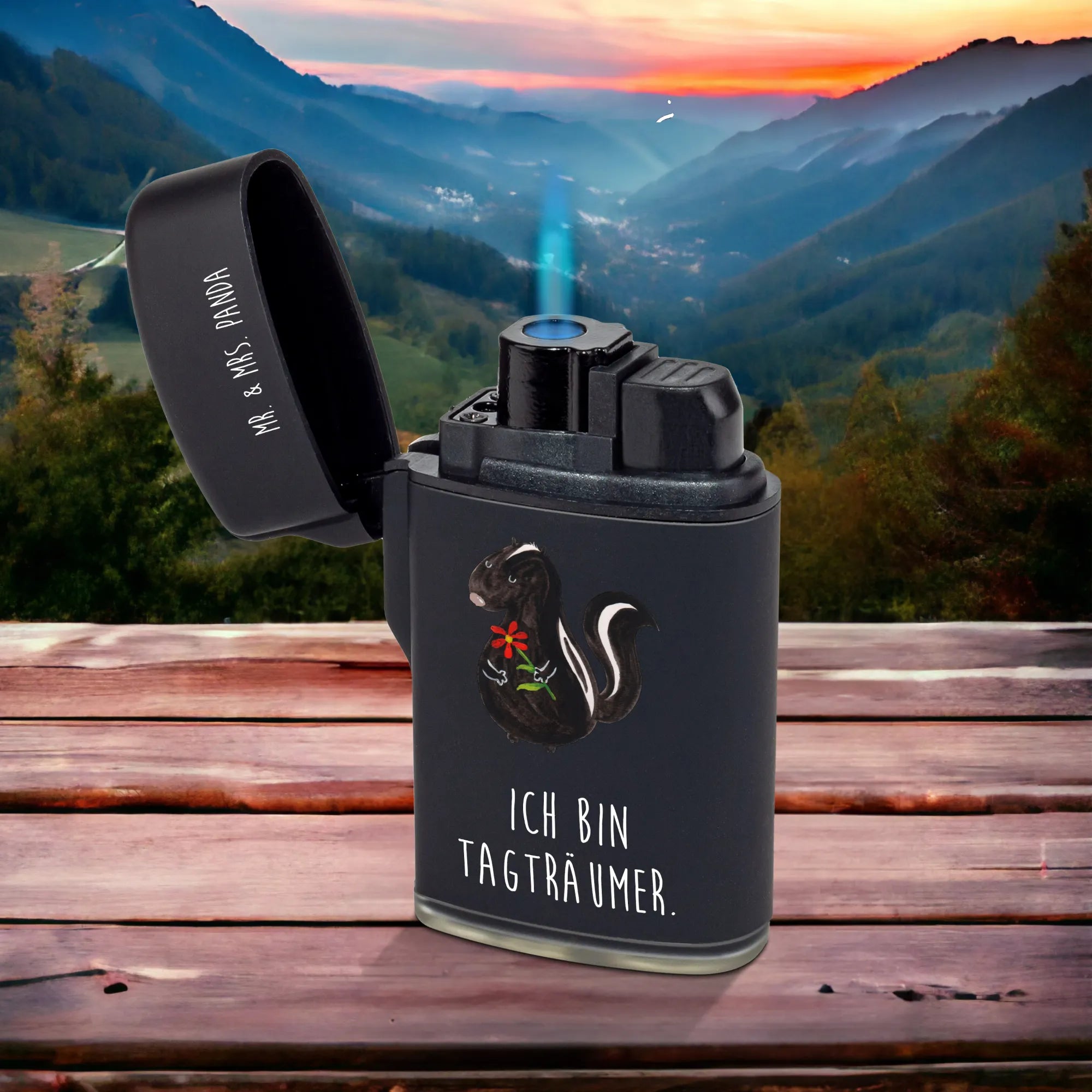 Entdecke das wundervolle Feuerzeug mit dem süßen Stinktier-Motiv aus der Stinktier Kollektion von Mr. & Mrs. Panda!