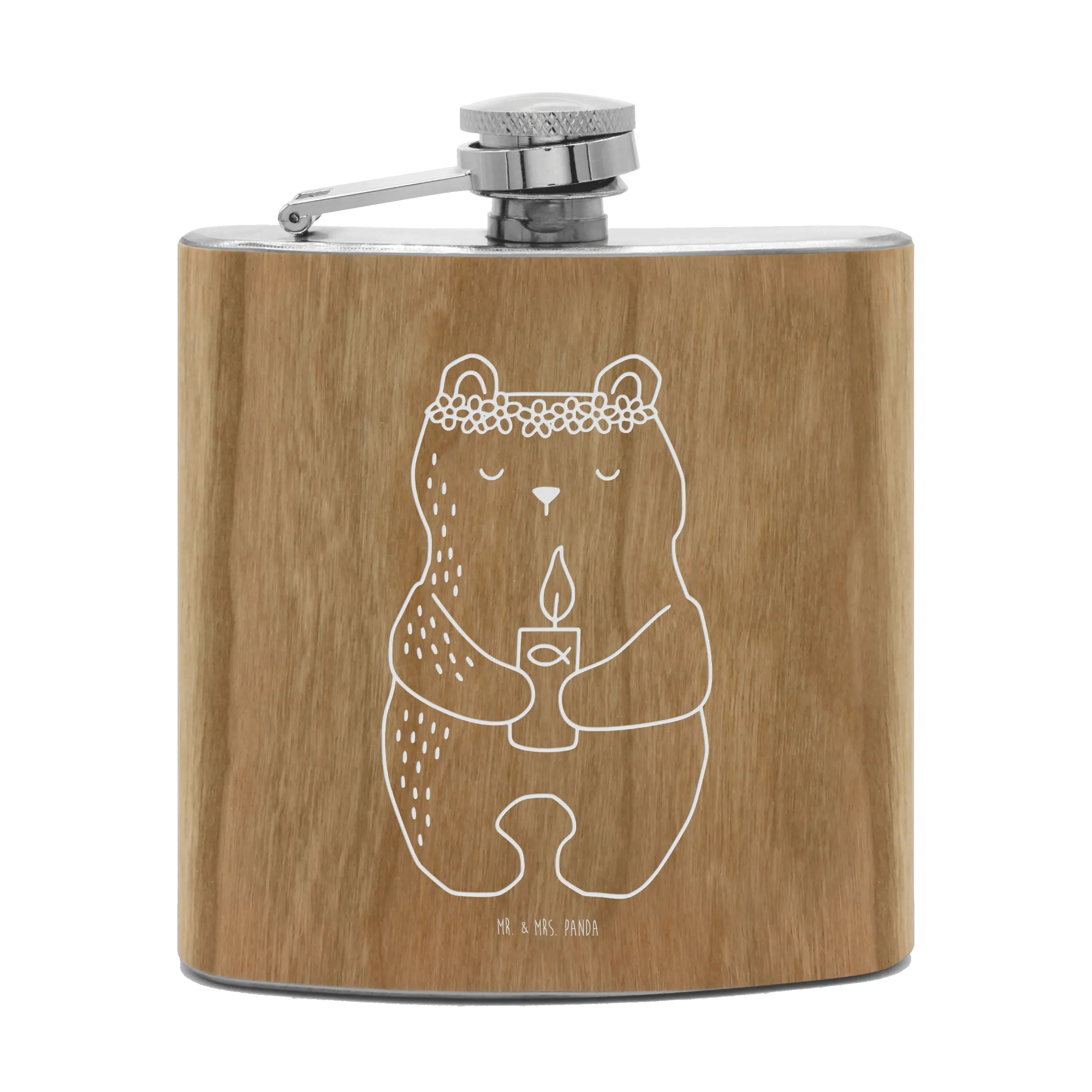 Genieße deine Lieblingsgetränke stilvoll mit dem Flachmann von Mr. & Mrs. Panda. Mit den perfekten Abmessungen von 109 mm x 93 mm x 22 mm und einem Füllvolumen von 150 ml ist dieser Flachmann nicht nur praktisch, sondern auch ein echter Blickfang. Der Edelstahl, umhüllt mit Holzlaminat, gibt dem Flachmann eine besonders edle Note. Die humorvolle Gravur mit Motiven, die Freude bereiten, macht ihn zum idealen Begleiter für Junggesellenabschiede, Wandertouren oder entspannte Ausflüge mit Freunden. Super leicht und ideal zu transportieren, passt er in jede Tasche. Der Flachmann liegt gut in der Hand und ist mit einem sicheren Schraubverschluss ausgestattet, der ein Auslaufen verhindert. Achte darauf, ihn nur mit heißem Wasser zu reinigen, denn er ist nicht spülmaschinenfest!