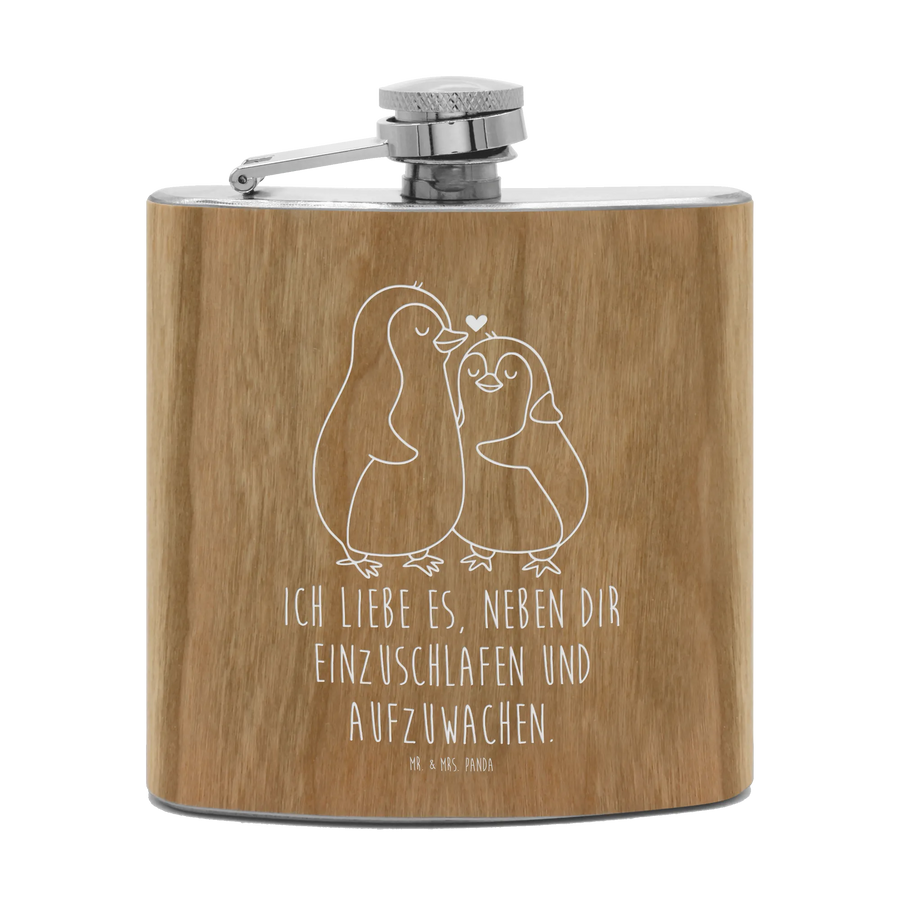 Was gibt es besseres, als einen kleinen Flachmann von Mr. & Mrs. Panda in deiner Tasche zu haben? Mit den Maßen von 109 mm x 93 mm x 22 mm und einem Füllvolumen von 150 ml umfasst er die perfekte Menge, um mit Freunden unterwegs anzustoßen! Hergestellt aus solidem Edelstahl und ummantelt mit stilvollem Holzlaminat, bietet dieser Flachmann eine edle Optik und ein angenehmes Tragegefühl. Die liebevolle Gravur mit spritzigen Sprüchen und niedlichen Motiven sorgt für gute Laune bei jedem Fest. Ob beim Junggesellenabschied oder beim Wandern, dieser Flachmann ist immer ein praktischer Begleiter. Mit dem sicheren Schraubverschluss bleibt alles dicht und er ist leicht zu reinigen - einfach mit heißem Wasser! Bitte beachte, dass er nicht spülmaschinenfest ist.