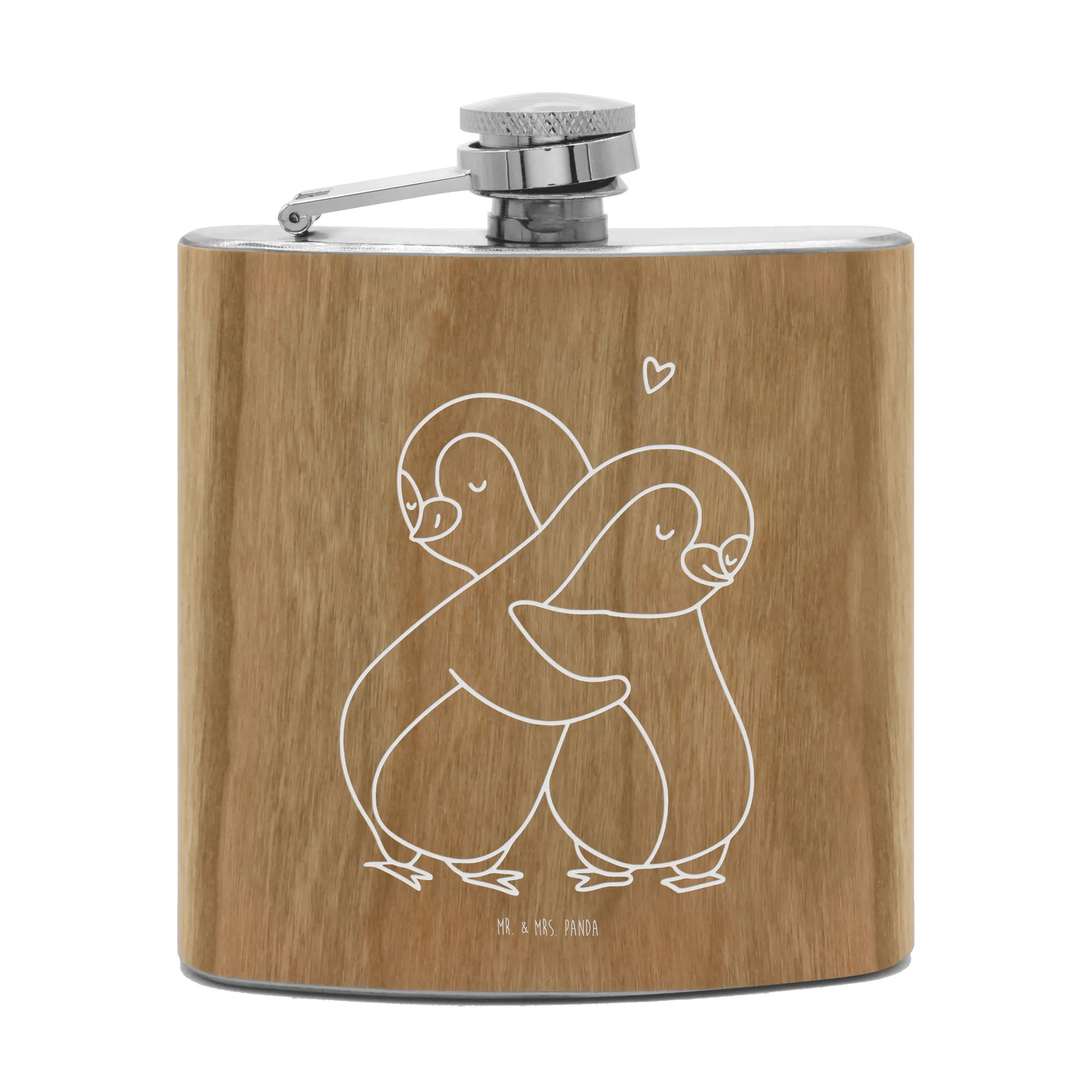 Der Flachmann von Mr. & Mrs. Panda ist das perfekte Accessoire für alle, die gerne unterwegs sind. Er hat kompakte Maße von 109 mm x 93 mm x 22 mm und ein Füllvolumen von 150 ml. Hergestellt aus robustem Edelstahl und ummantelt mit schönem Holzlaminat, ist dieser Flachmann nicht nur funktional, sondern auch ein echter Hingucker. Die exquisite Gravur mit humorvollen Sprüchen und süßen Motiven macht ihn zu einem besonderen Geschenk. Ob für einen Junggesellenabschied, beim Wandern oder einfach nur zum Feiern mit Freunden, dieser Flachmann ist superleicht und lässt sich leicht transportieren. Er liegt angenehm in der Hand und ist zudem mit einem sicheren Schraubverschluss ausgestattet, sodass du dir keine Sorgen um Auslaufen machen musst. Pflege ihn einfach mit heißem Wasser, um die Qualität zu erhalten, denn er ist nicht spülmaschinenfest!
