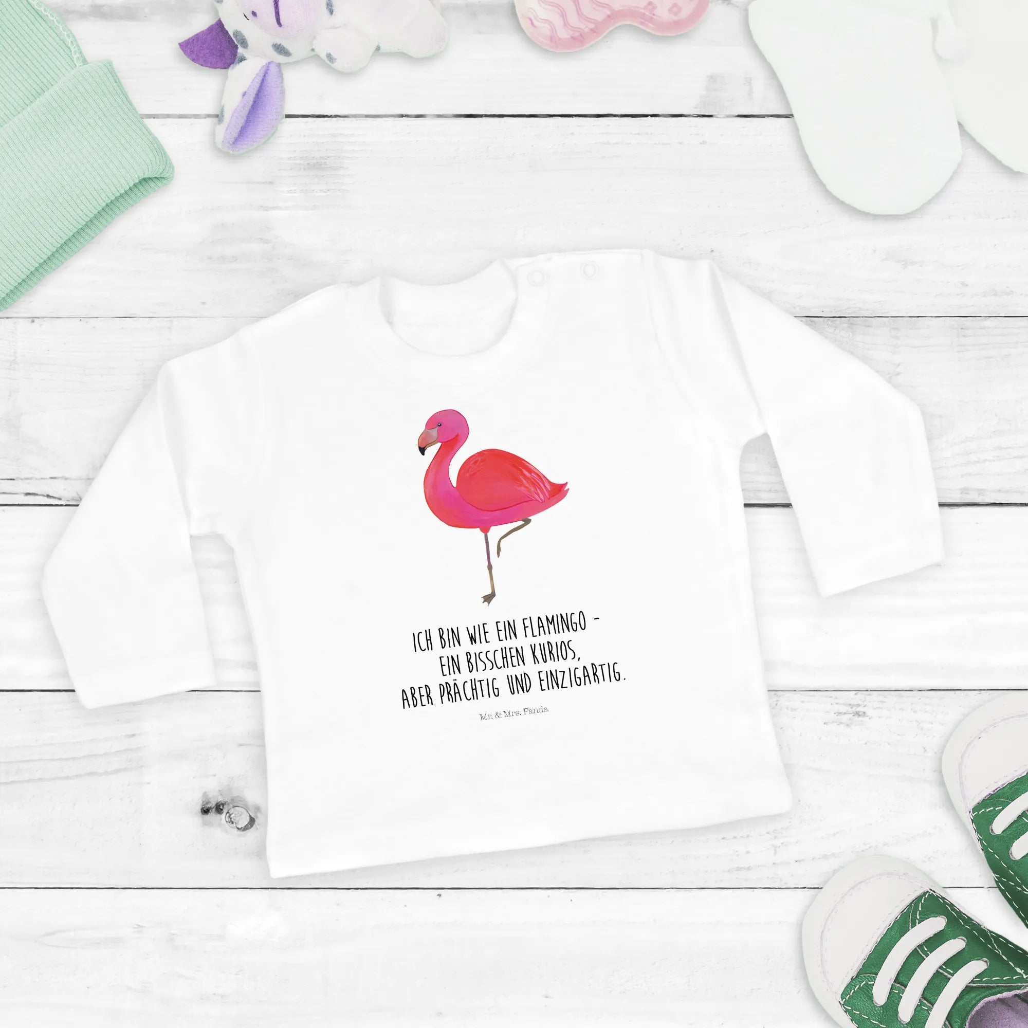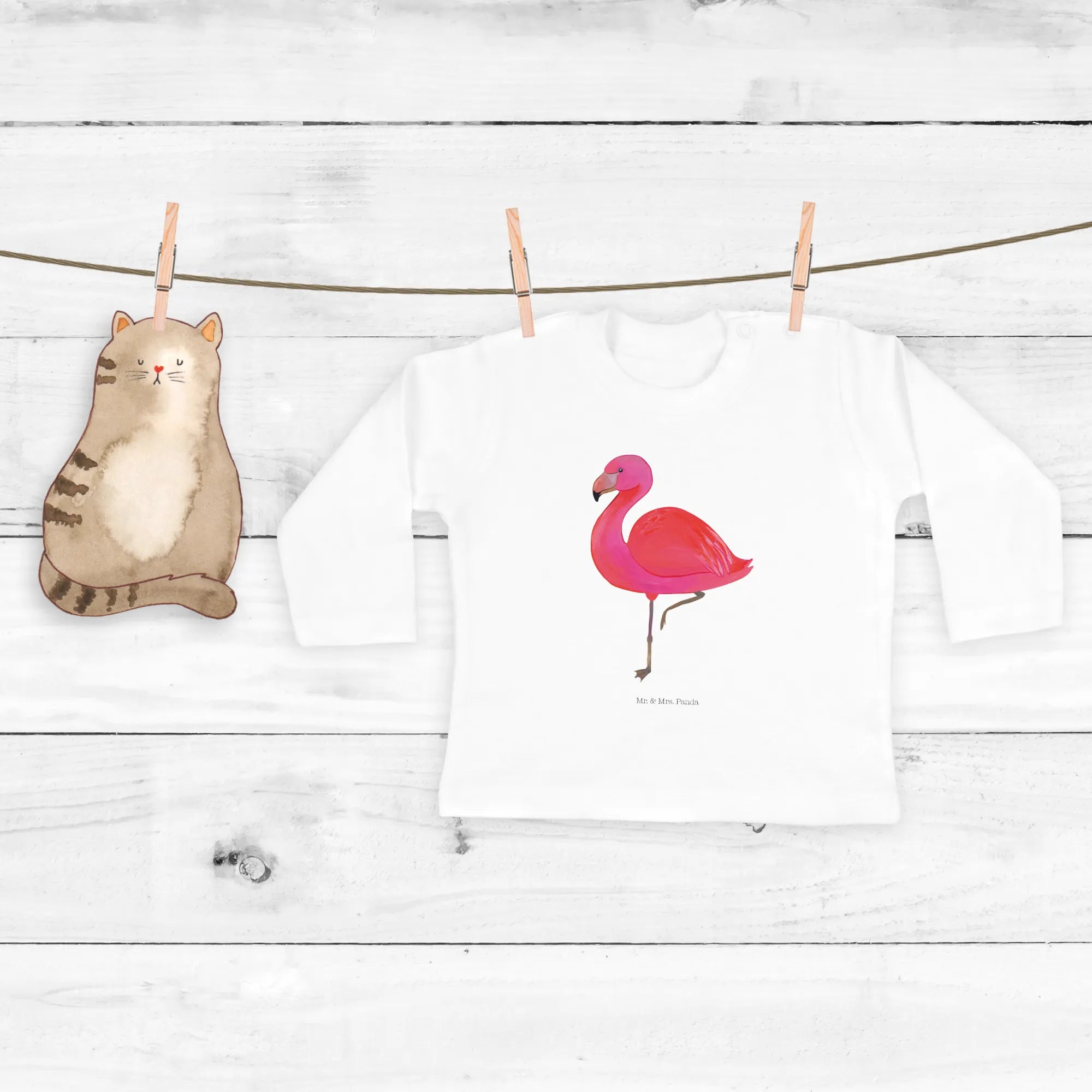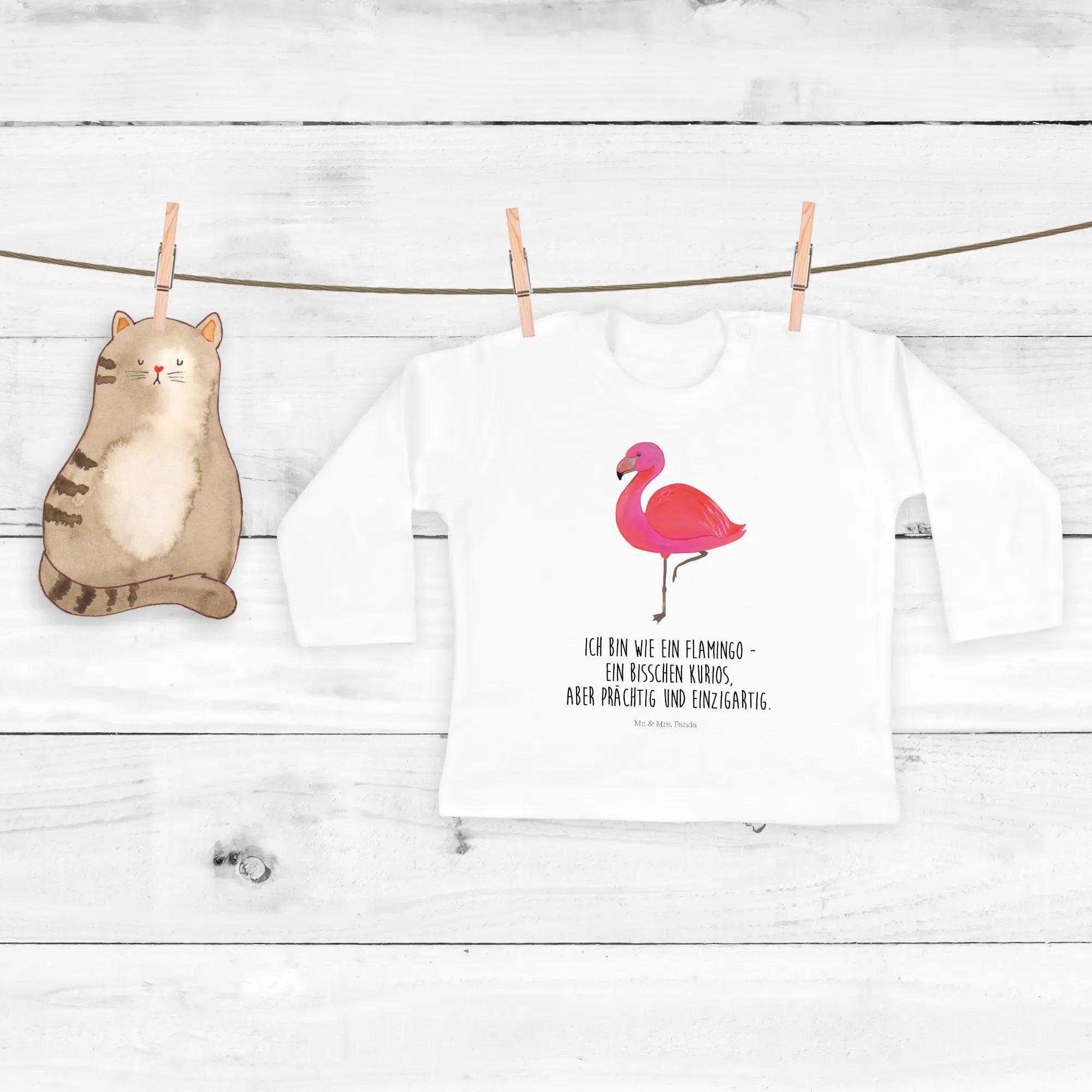 Mit dem Flamingo Baby Longsleeve setzt du auf Qualität und Einzigartigkeit - denn jedes Stück aus der Mr. & Mrs. Panda-Kollektion erzählt eine wunderbare Geschichte. Bestelle dieses kuschelige Langarmshirt und bringe ein Stück Sommer in die Garderobe deines Babys!