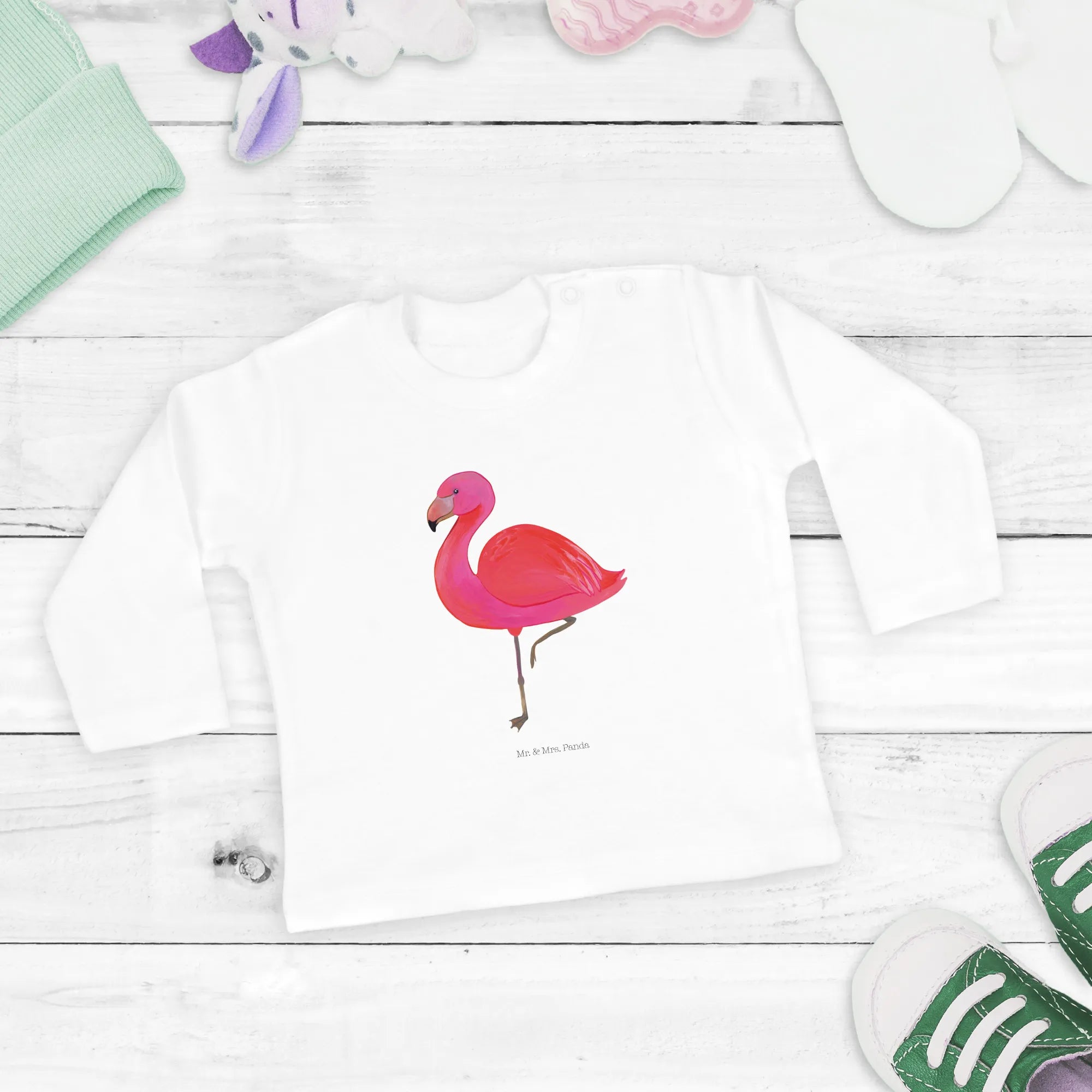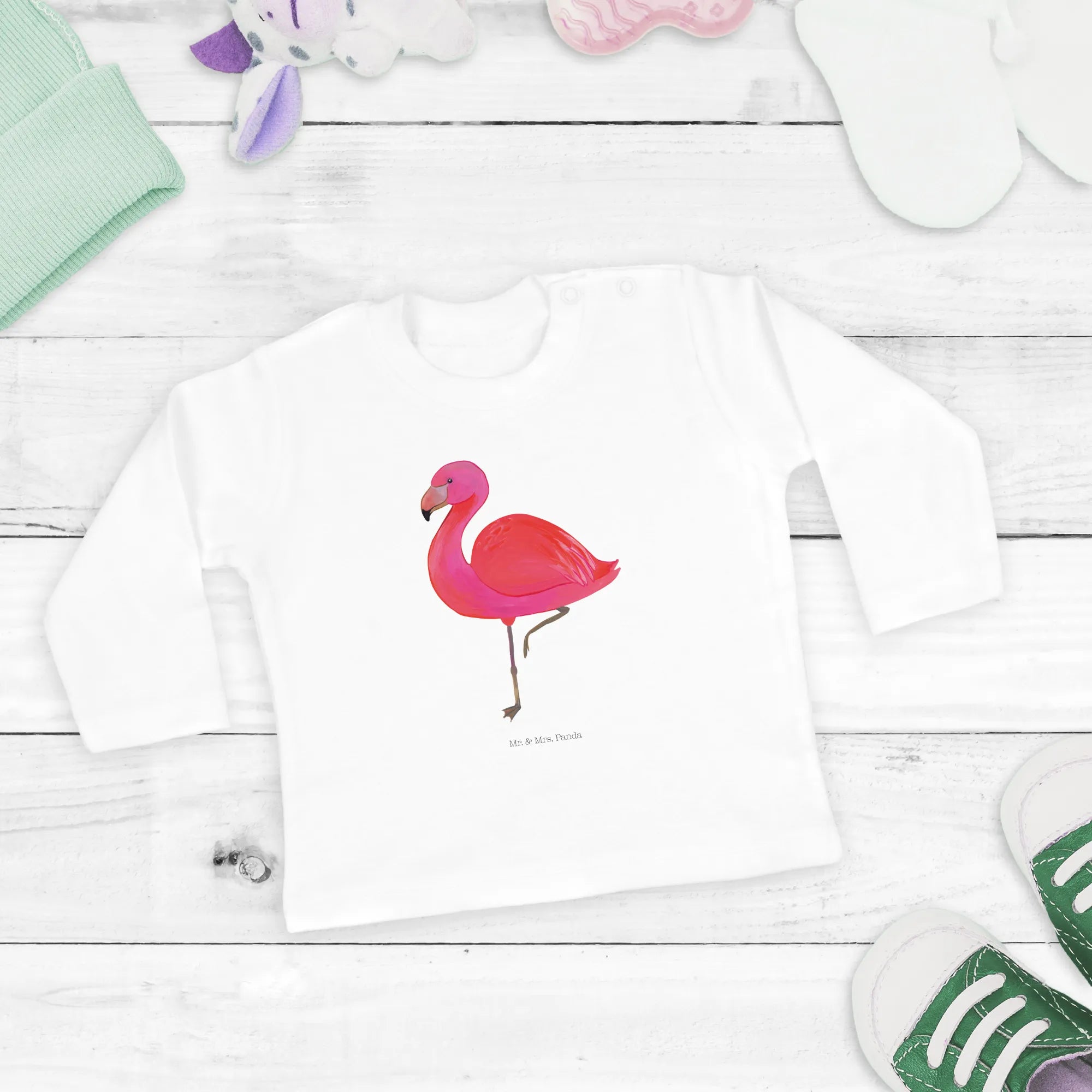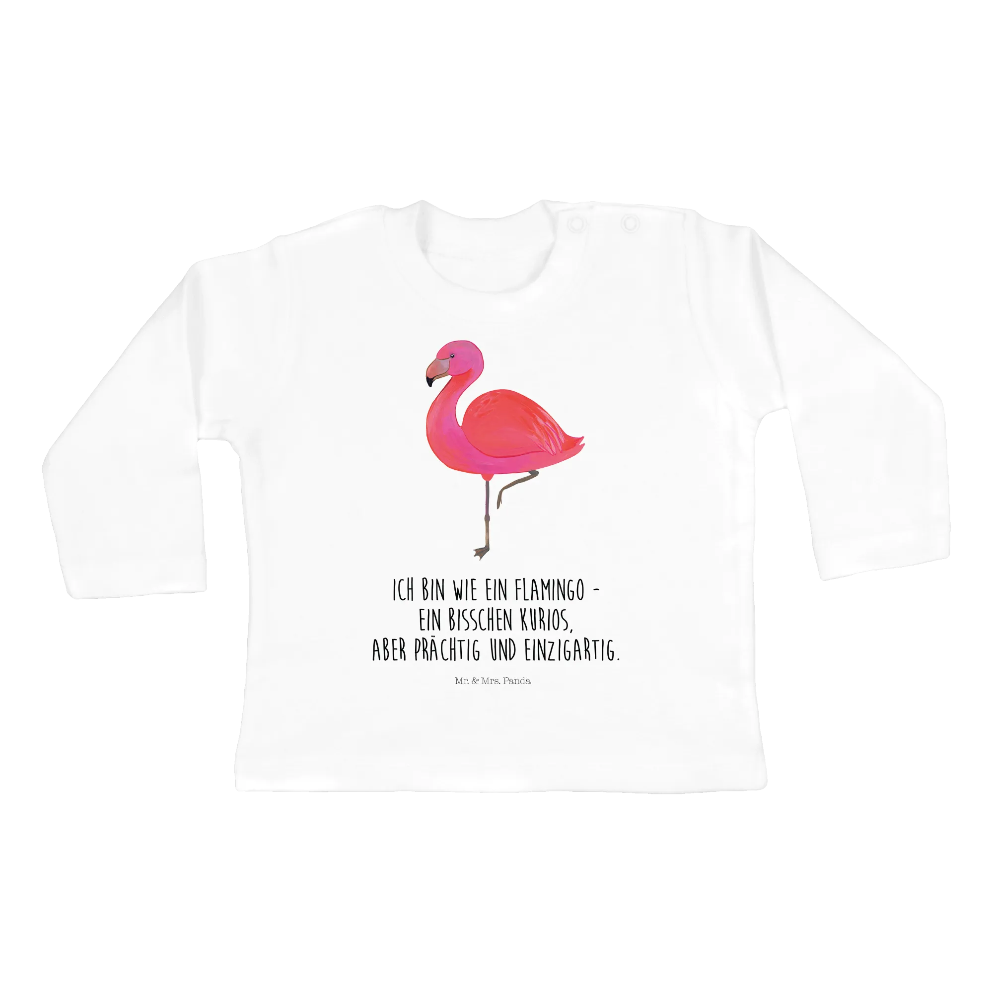 Mit dem Flamingo Baby Longsleeve setzt du auf Qualität und Einzigartigkeit - denn jedes Stück aus der Mr. & Mrs. Panda-Kollektion erzählt eine wunderbare Geschichte. Bestelle dieses kuschelige Langarmshirt und bringe ein Stück Sommer in die Garderobe deines Babys!