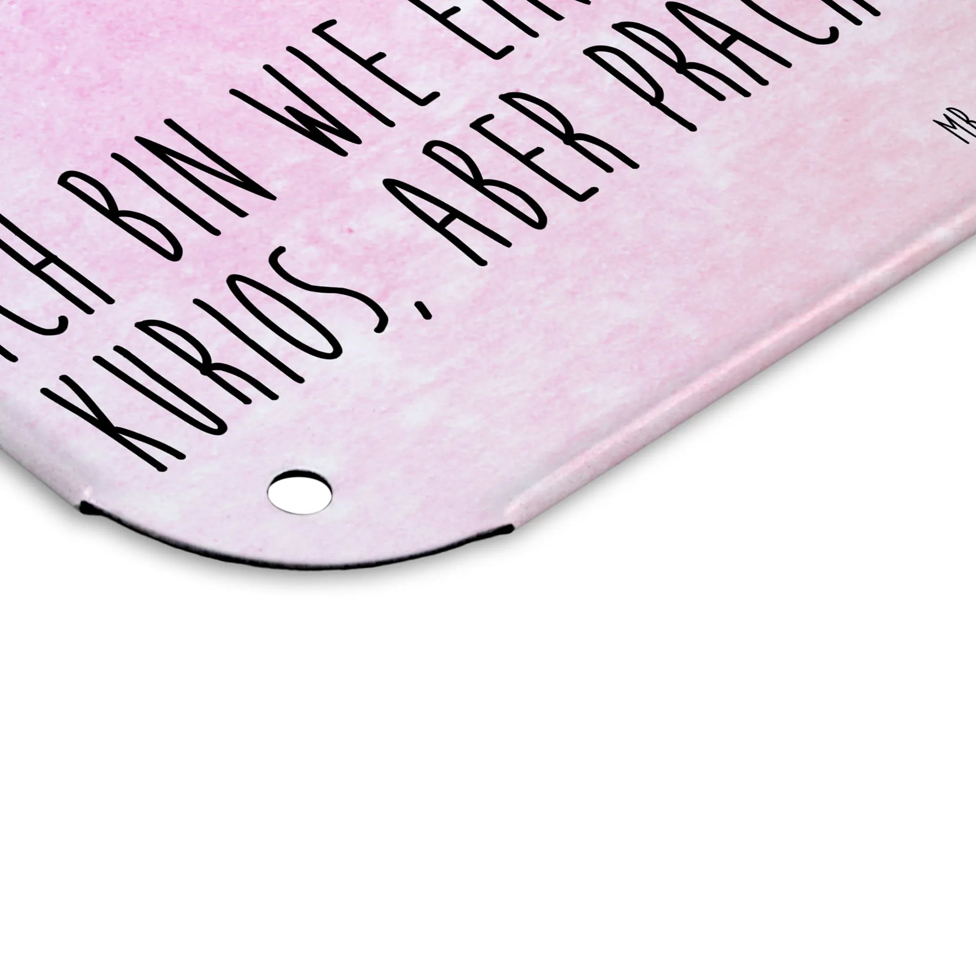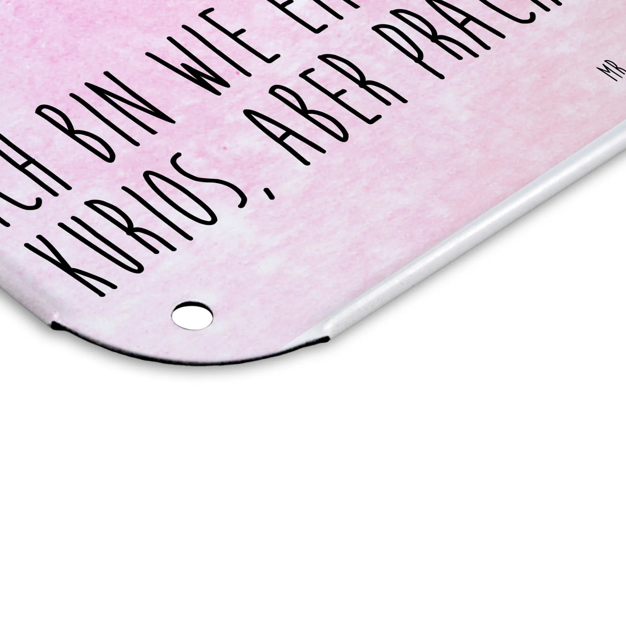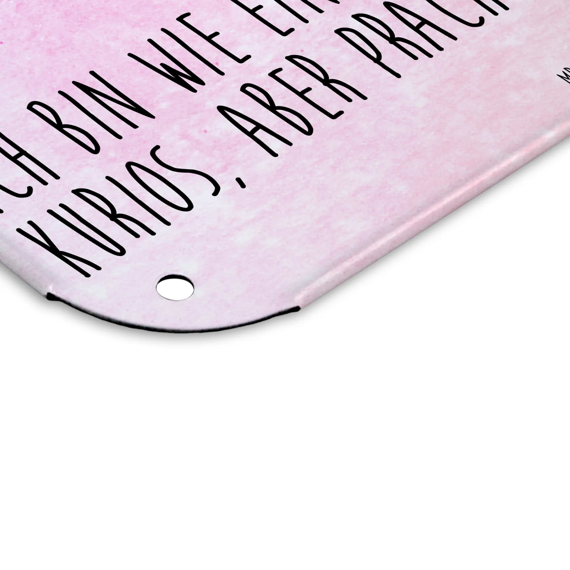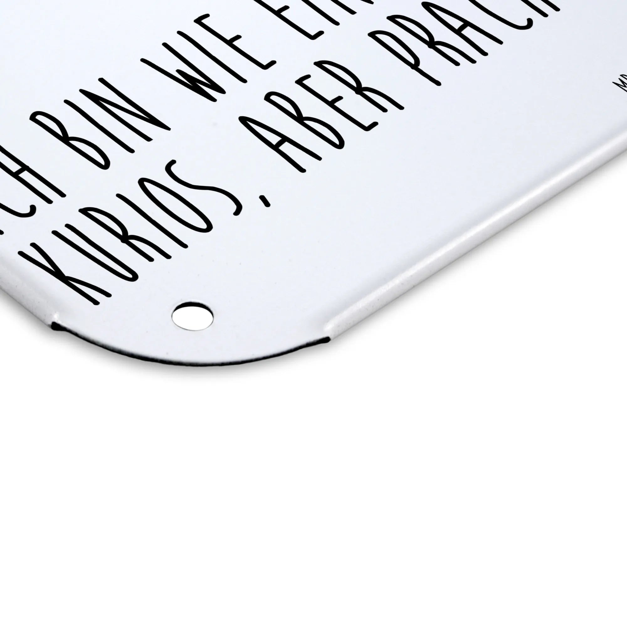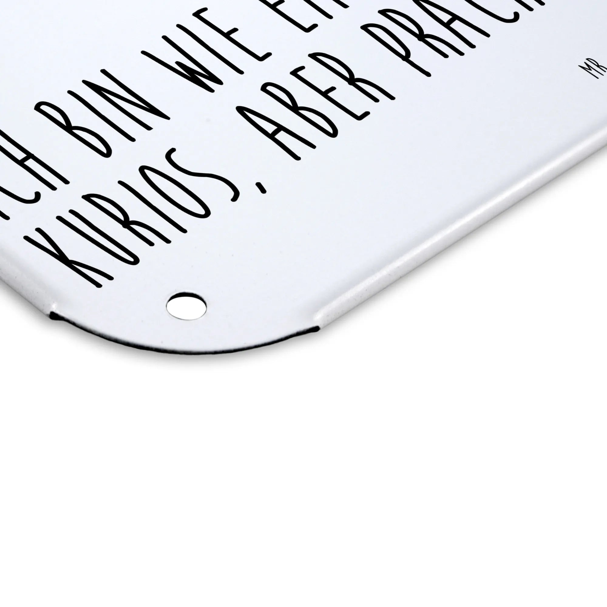 Das wunderschöne Blechschild "Ich bin wie ein Flamingo - ein bisschen kurios, aber prächtig und einzigartig." aus der Flamingo-Kollektion von Mr. & Mrs. Panda ist das perfekte Geschenk für all jene, die Individualität und Lebensfreude schätzen.