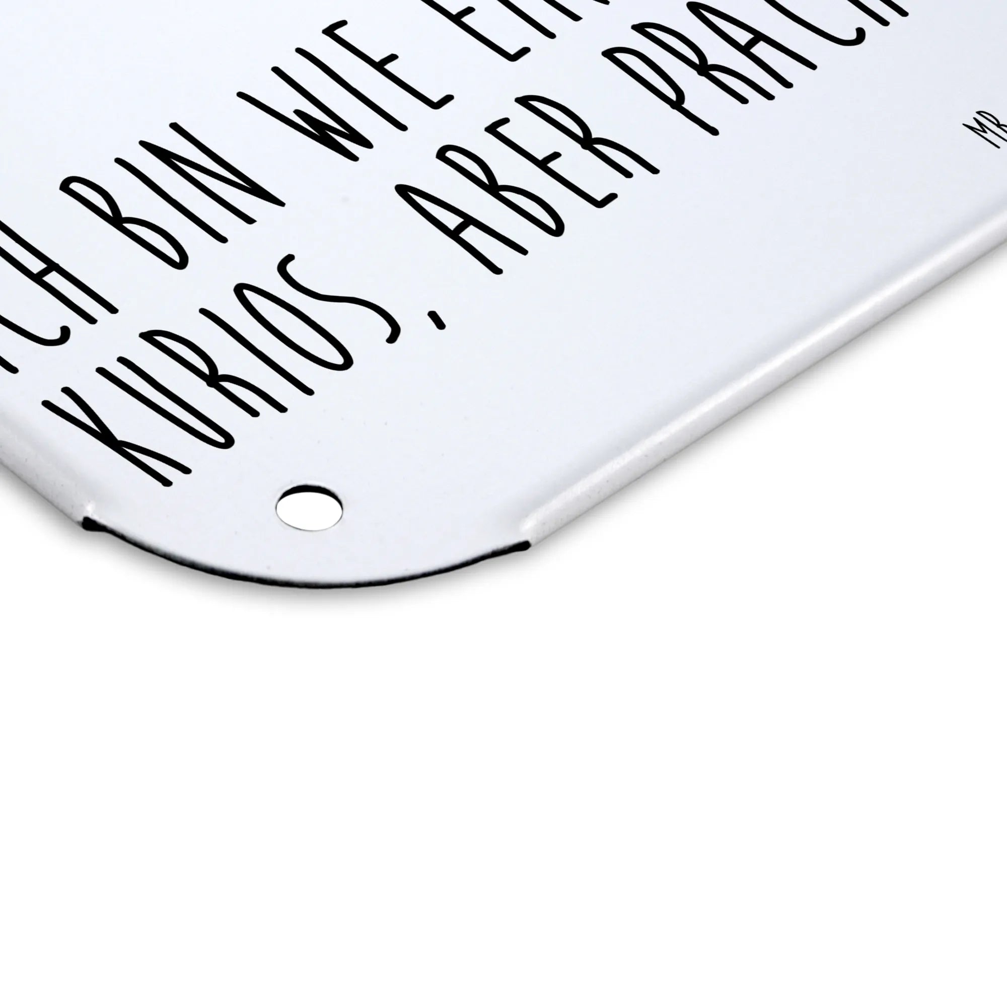 Entdecke das bezaubernde Blechschild "Flamingo classic" aus der Flamingo-Kollektion von Mr. & Mrs. Panda, das das perfekte Geschenk für Deine Liebsten ist! Mit seinem einzigartigen Design und dem liebevollen Spruch "Ich bin wie ein Flamingo - ein bisschen kurios, aber prächtig und einzigartig." versprüht es Lebensfreude und Selbstliebe.