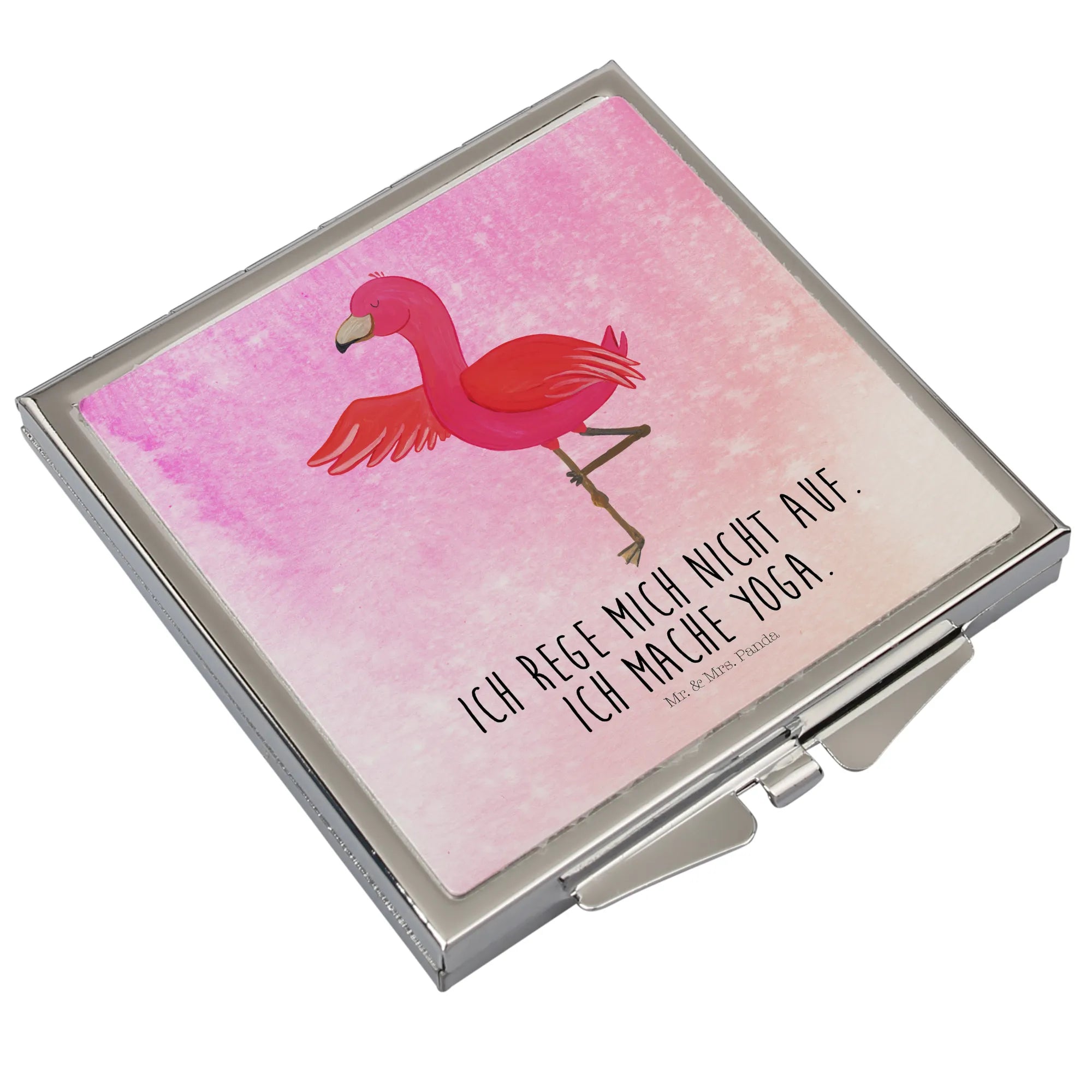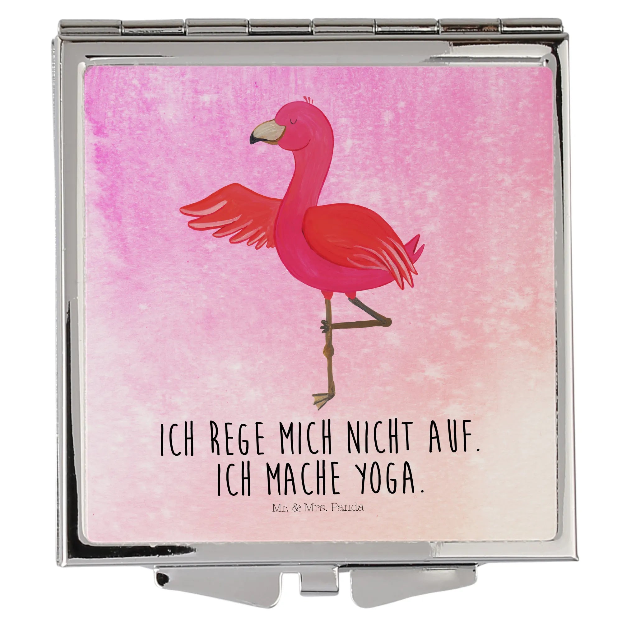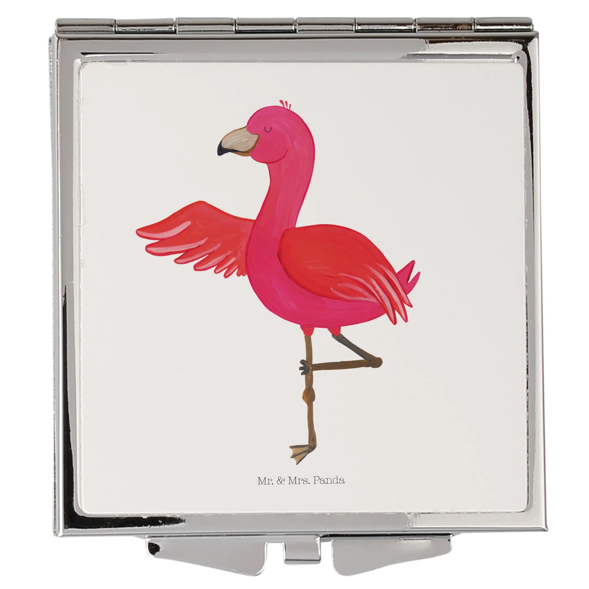 Handtaschenspiegel quadratisch Flamingo Yoga - mit Spruch - Weiß