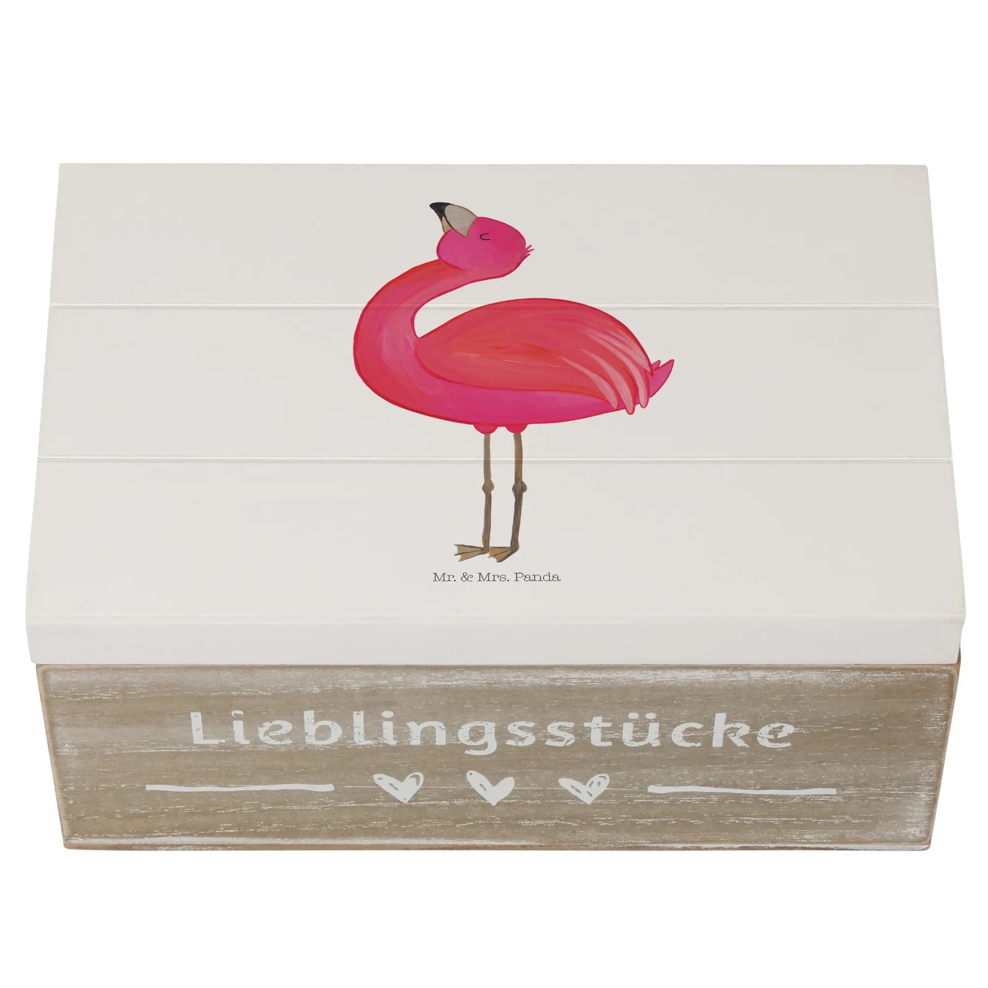 Die wunderschöne Holzkiste mit dem eleganten Flamingo-Motiv von Mr. & Mrs. Panda ist das perfekte Geschenk für all jene, die Freude, Selbstliebe und Stolz in ihrem Leben schätzen. Diese sorgfältig designte Erinnerungskiste aus robuster Premium Hartfaser bietet nicht nur einen stilvollen Aufbewahrungsort für Deine kostbaren Schätze, sondern ist auch ein echter Hingucker in jeder Wohnung.
