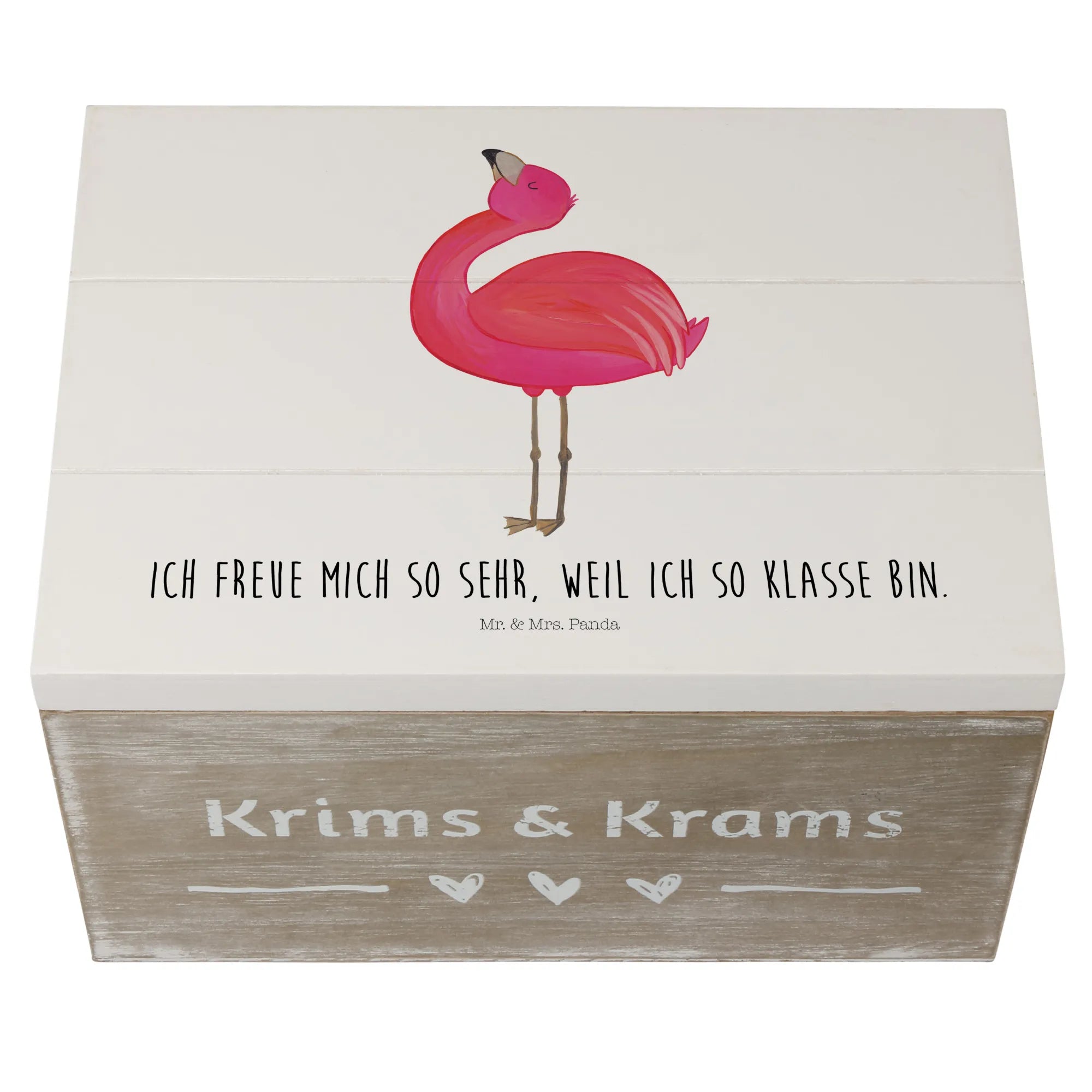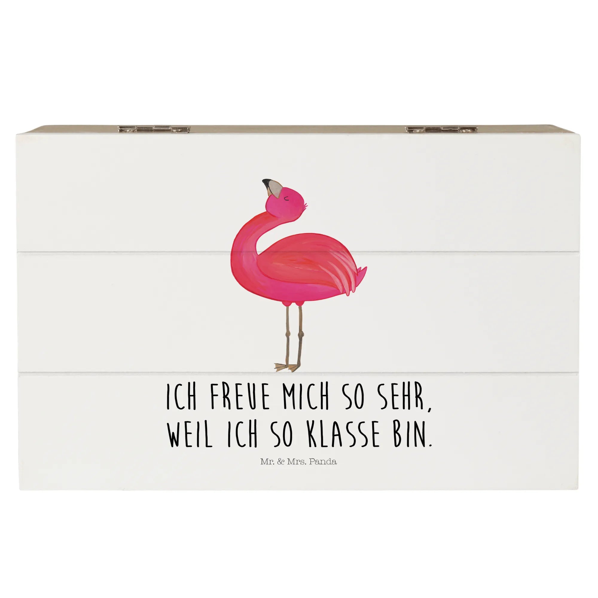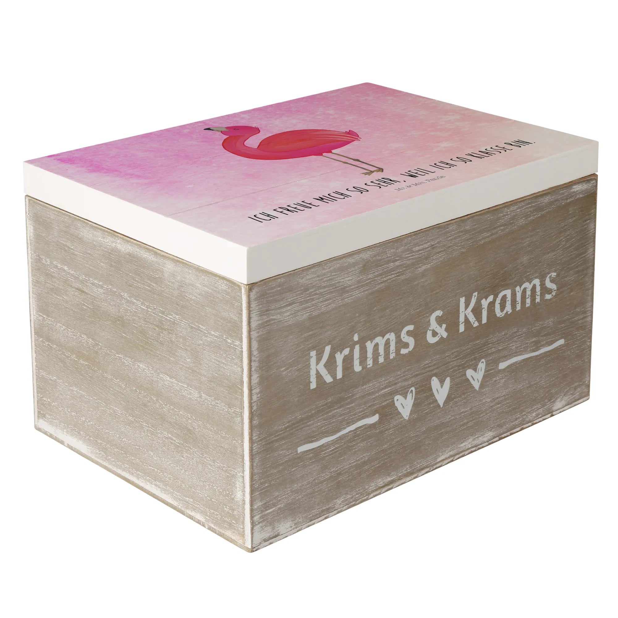 Ob zur Geburtstagsparty deiner besten Freundin, als liebevolles Geschenk für deine Mama oder als Erinnerungskiste für deine Tochter – die Holzkiste 'Flamingo stolz' ist das perfekte Geschenk für jeden Anlass. Die Flamingo-Kollektion von Mr. & Mrs. Panda vereint Deko und Geschenke mit einem fröhlichen Sommergefühl. Verschenke Freude und Selbstliebe, mit dieser einzigartigen Kiste, die zum Staunen und Träumen einlädt.