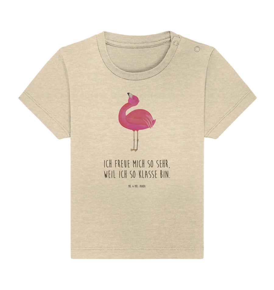 Entdecke das perfekte Geschenk für kleine Flamingo-Fans: unser Organic Baby Shirt mit dem einzigartigen Motiv "Flamingo stolz" aus der liebevollen Flamingo-Kollektion von Mr. & Mrs. Panda.