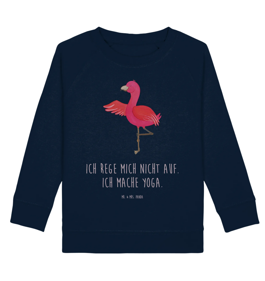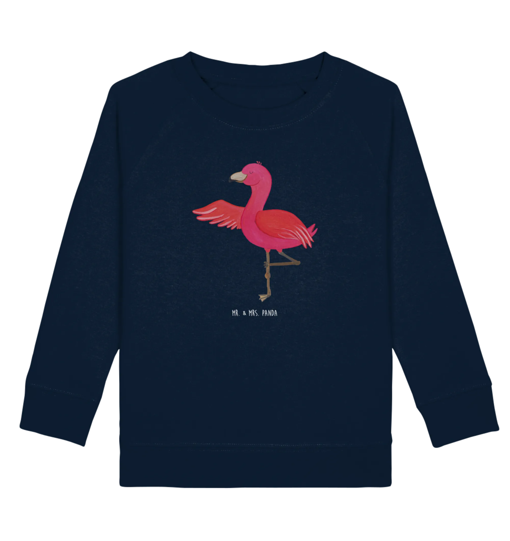 Lass das Kind in deinem Leben die positiven Vibes des Flamingos und die entspannenden Momente des Yoga spüren. Dieses Kunstwerk wurde mit Liebe von Mrs. Panda handgezeichnet, was jeden Pullover zu einem Unikat macht.
