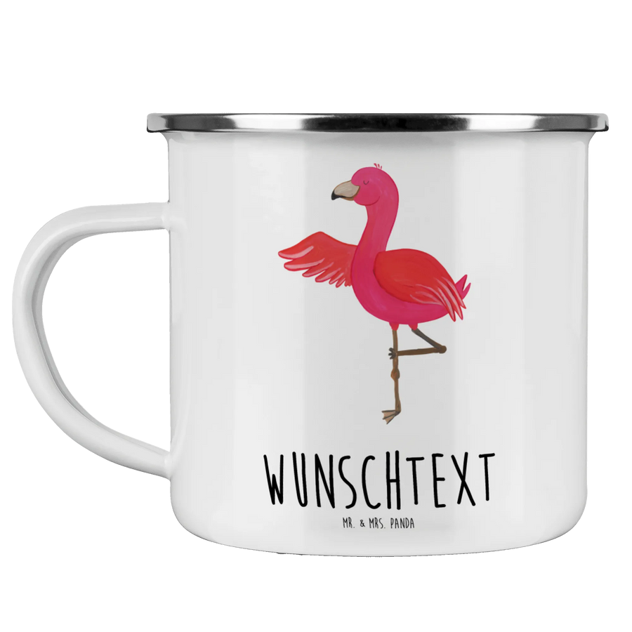 Du suchst nach dem perfekten Geschenk, das Liebe, Entspannung und Freude vereint? Unsere personalisierte Emaille Tasse mit dem bezaubernden Flamingo Yoga-Motiv aus der Flamingo-Kollektion von Mr. & Mrs. Panda ist genau das richtige für dich!