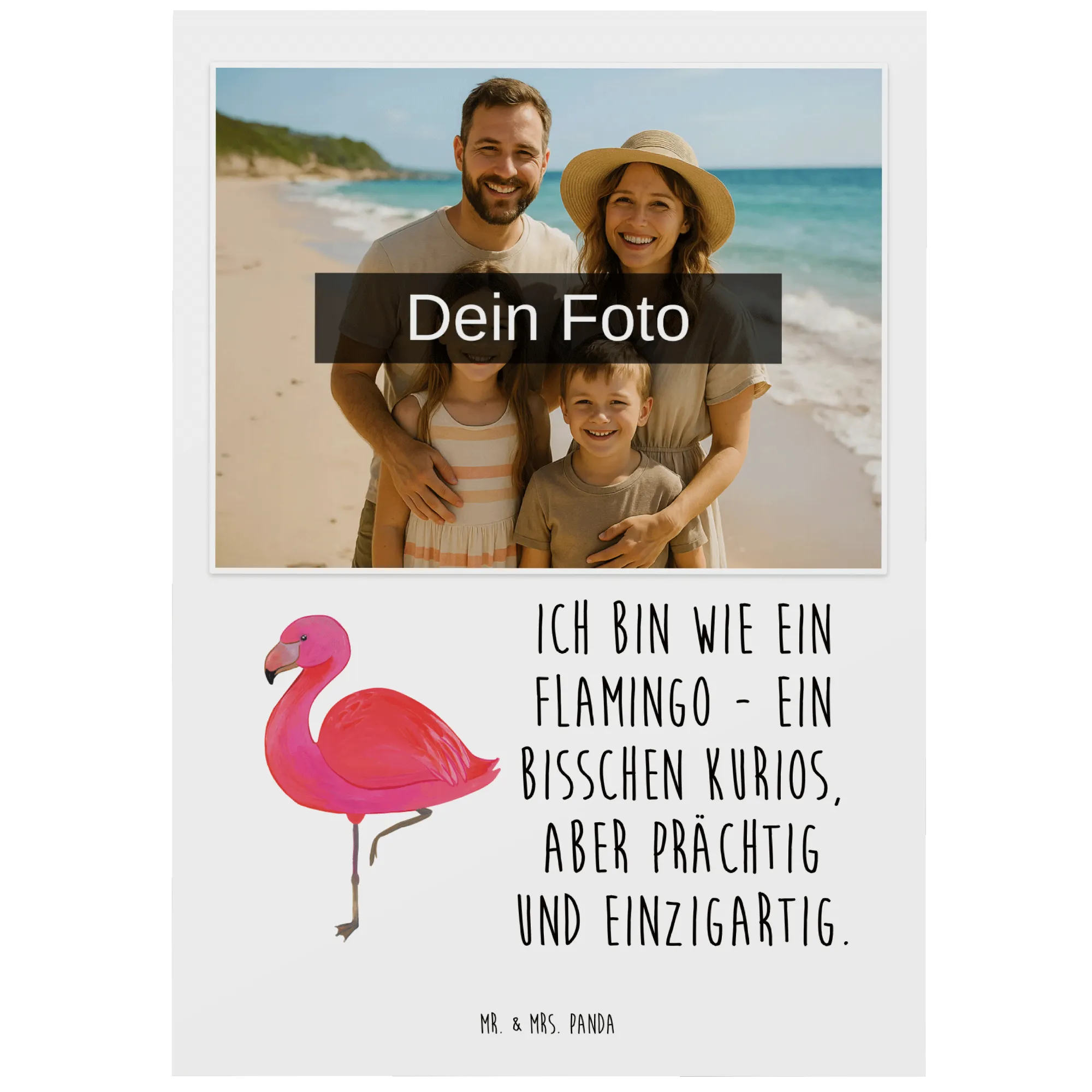 Die personalisierte Foto Postkarte "Flamingo classic" aus der Flamingo-Kollektion von Mr. & Mrs. Panda ist das perfekte Geschenk für alle, die Einzigartigkeit und Selbstliebe schätzen. Diese Postkarte bringt Farbe und Lebensfreude in jeden Raum!