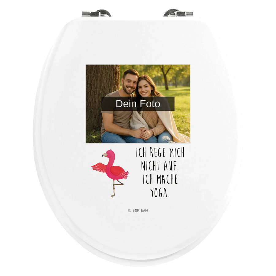 Personalisierter Foto WC Sitz Motiv Flamingo Yoga - Hartfaser Holzkern Weiß