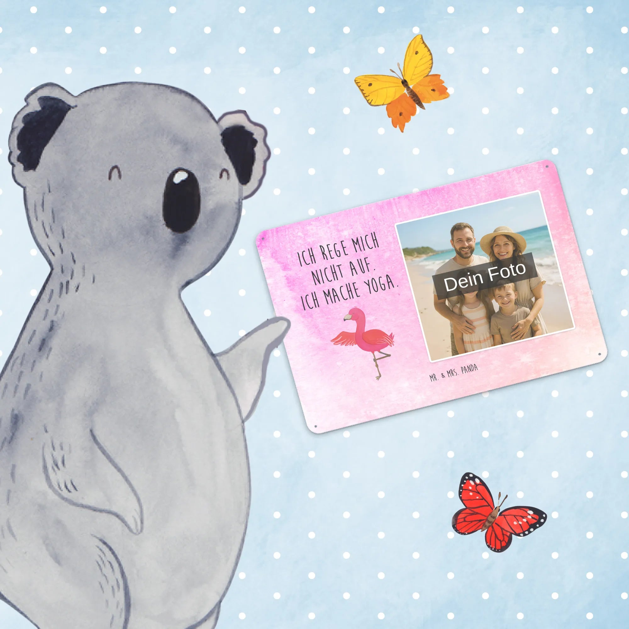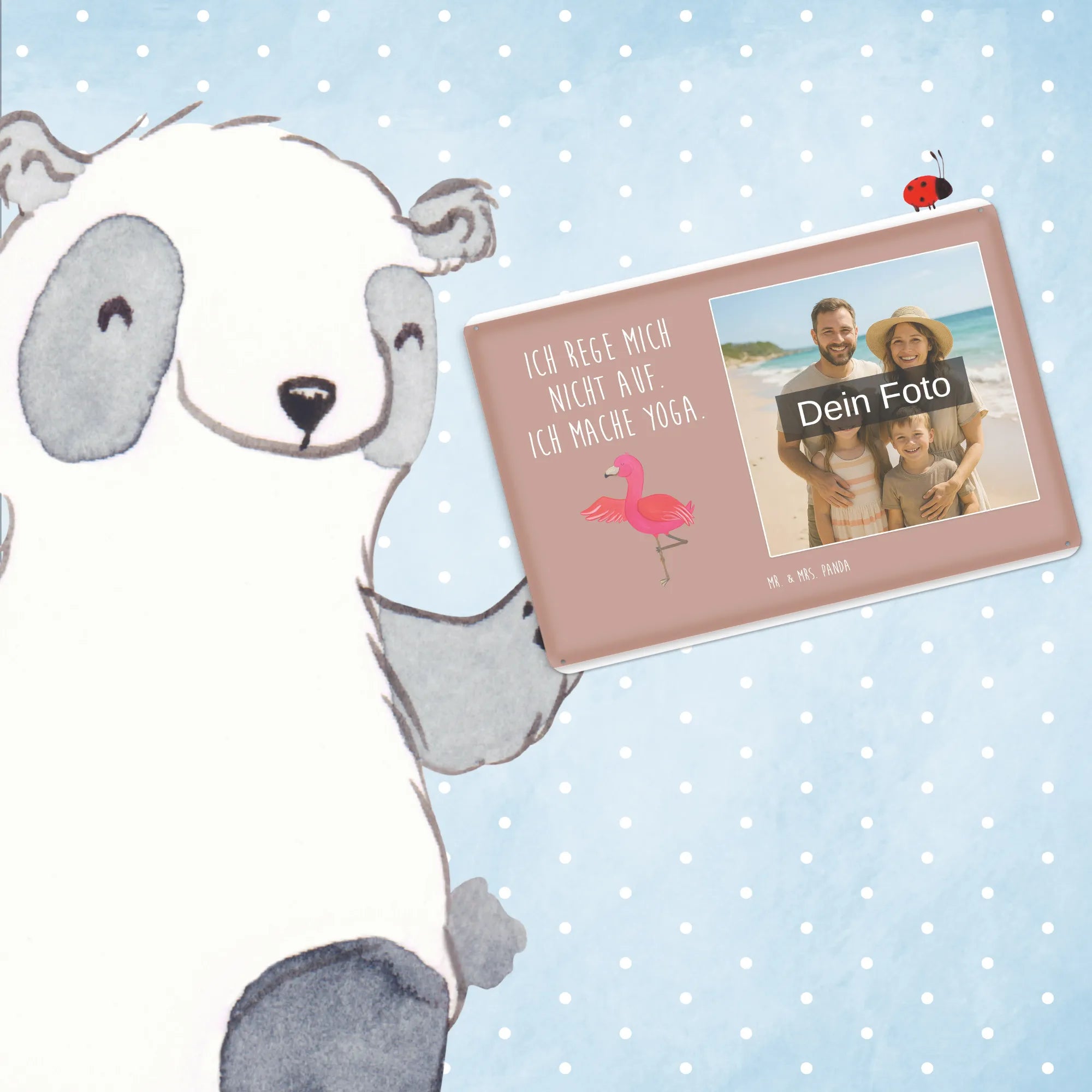 Schenke Persönlichkeit: Erstelle jetzt dein personalisierbares Blechschild Foto mit Mr. & Mrs. Panda – Foto hochladen, Text hinzufügen, bestellen und Freude verschenken.