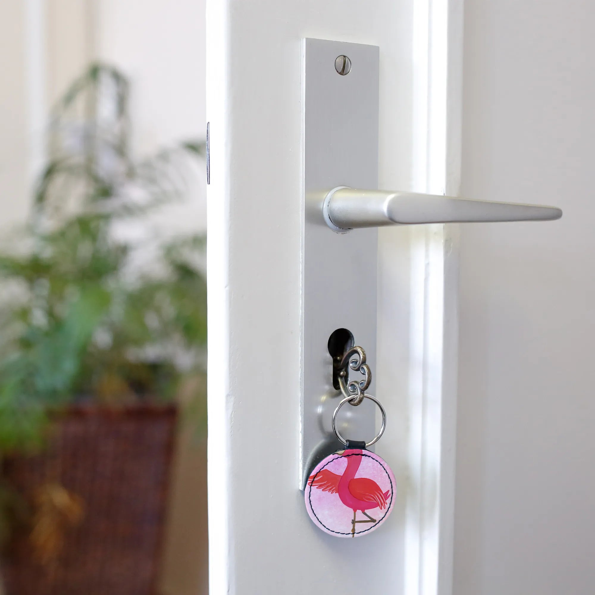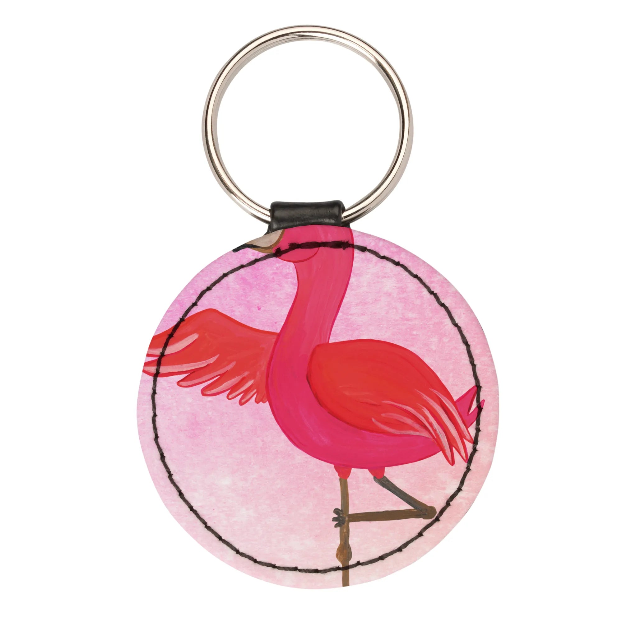 Entdecke unseren Rund Schlüsselanhänger Flamingo Yoga aus der zauberhaften Flamingo - Kollektion von Mr. & Mrs. Panda! 🌸 Dieser einzigartige Schlüsselanhänger ist nicht nur ein wunderschönes Accessoire für jeden Schlüsselbund, sondern auch ein perfekter Glücksbringer und Schutzengel. Das lebendig designte Motiv zeigt einen fröhlichen Flamingo, der in einer eleganten Yoga-Pose auf einem Bein steht, mit einem liebevollen Spruch: 'Ich rege mich nicht auf. Ich mache Yoga.'