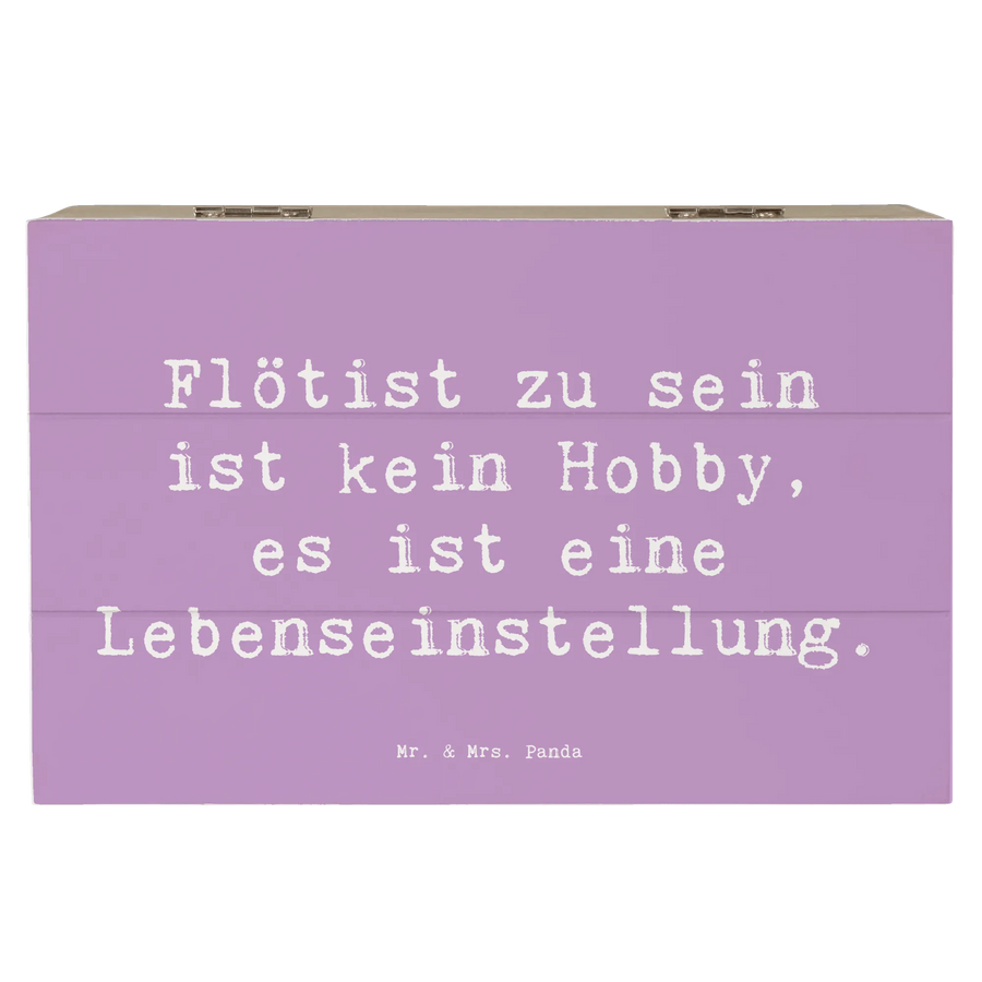 Diese wunderschöne Holzkiste von Mr. & Mrs. Panda ist das perfekte Geschenk für Musikliebhaber und Flöten-Fans! Die Kiste trägt das zauberhafte Motiv einer Flöte und die Aussage "Flötist zu sein ist kein Hobby, es ist eine Lebenseinstellung." Ob für Umzüge, Feste oder einfach nur um Erinnerungen zu sammeln, diese vielseitige Holzkiste eignet sich hervorragend als Aufbewahrungsort für all deine Schätze.