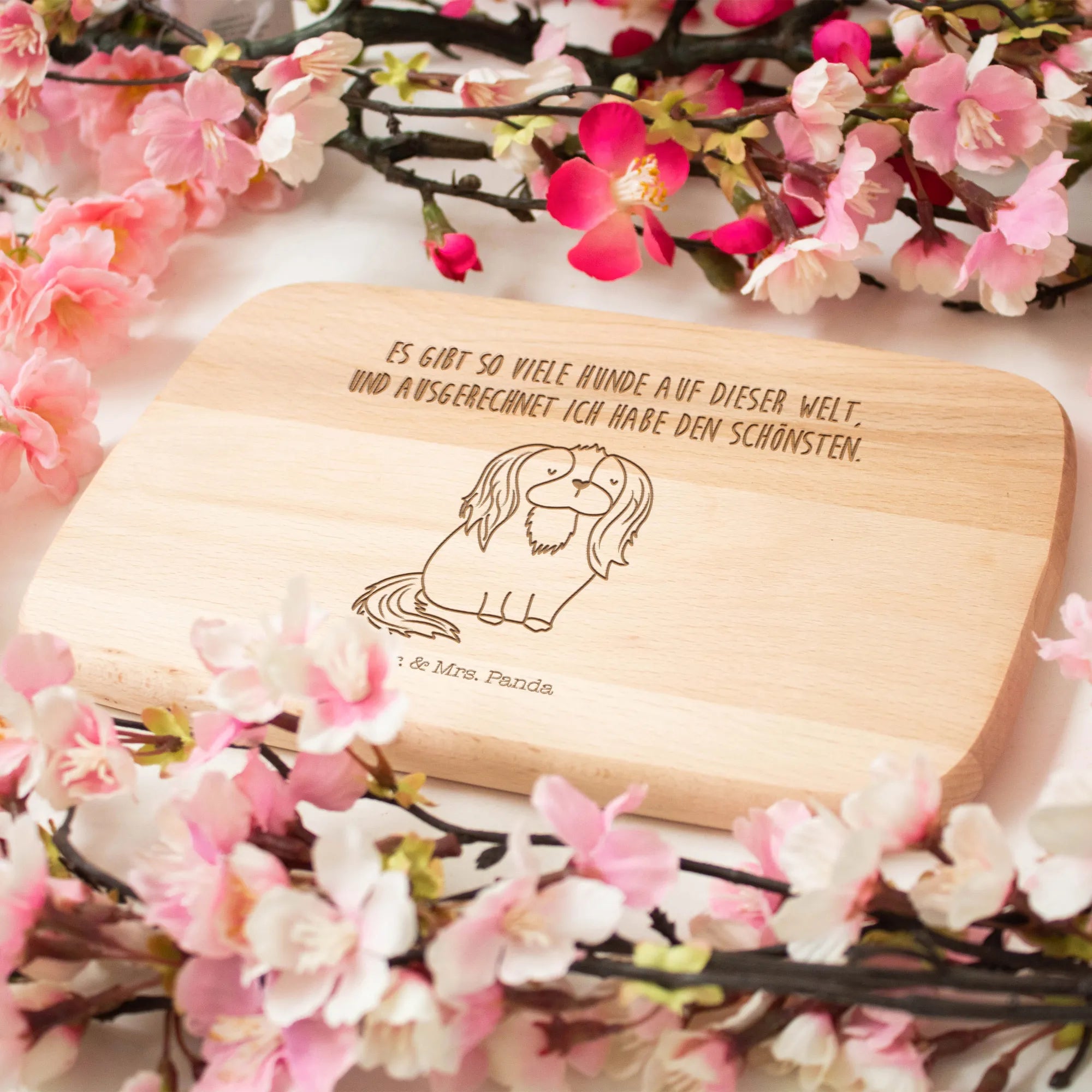 Das Frühstücksbrett mit dem zauberhaften Motiv des Cavalier King Charles Spaniels von Mr. & Mrs. Panda ist der perfekte Begleiter für jeden tierlieben Menschen! Ob für das gemütliche Frühstück zu zweit, als liebevolles Geschenk für einen Hundebesitzer, oder einfach, um den eigenen Hund zu feiern - mit diesem besonderen Holzbrett machst du alles richtig.