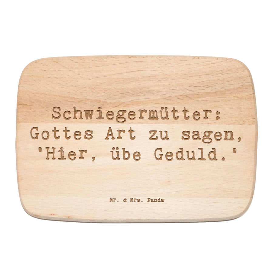 Das liebevoll gestaltete Frühstücksbrett mit dem Spruch 'Schwiegermütter: Gottes Art zu sagen, "Hier, übe Geduld."' ist das perfekte Geschenk für deine Schwiegermutter. Hergestellt aus hochwertigem Birkenholz, vereint dieses Frühstücksbrett Funktionalität und Charme. Es ist ideal für die Präsentation köstlicher Snacks oder als praktisches Küchenutensil für das tägliche Frühstück. Dank der langlebigen Lasergravur bleibt der Spruch auch nach vielen Einsätzen gut sichtbar.