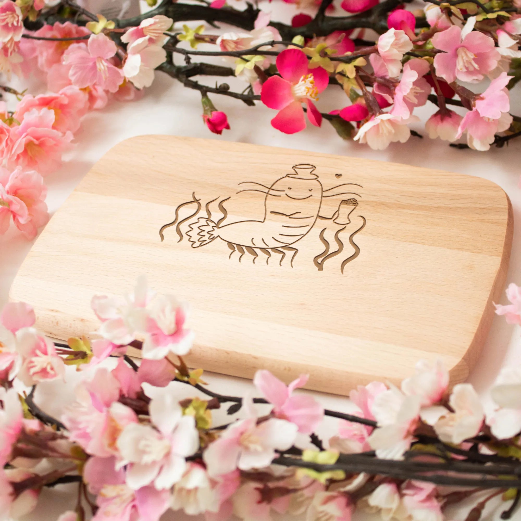 Die Lasergravur sorgt dafür, dass das Motiv lange erhalten bleibt und das Holz ist extrem strapazierfähig. Pflege dein Brett mit liebevoller Handwäsche und vermeide den Kontakt mit viel Wasser, damit es dir lange Freude bereitet.