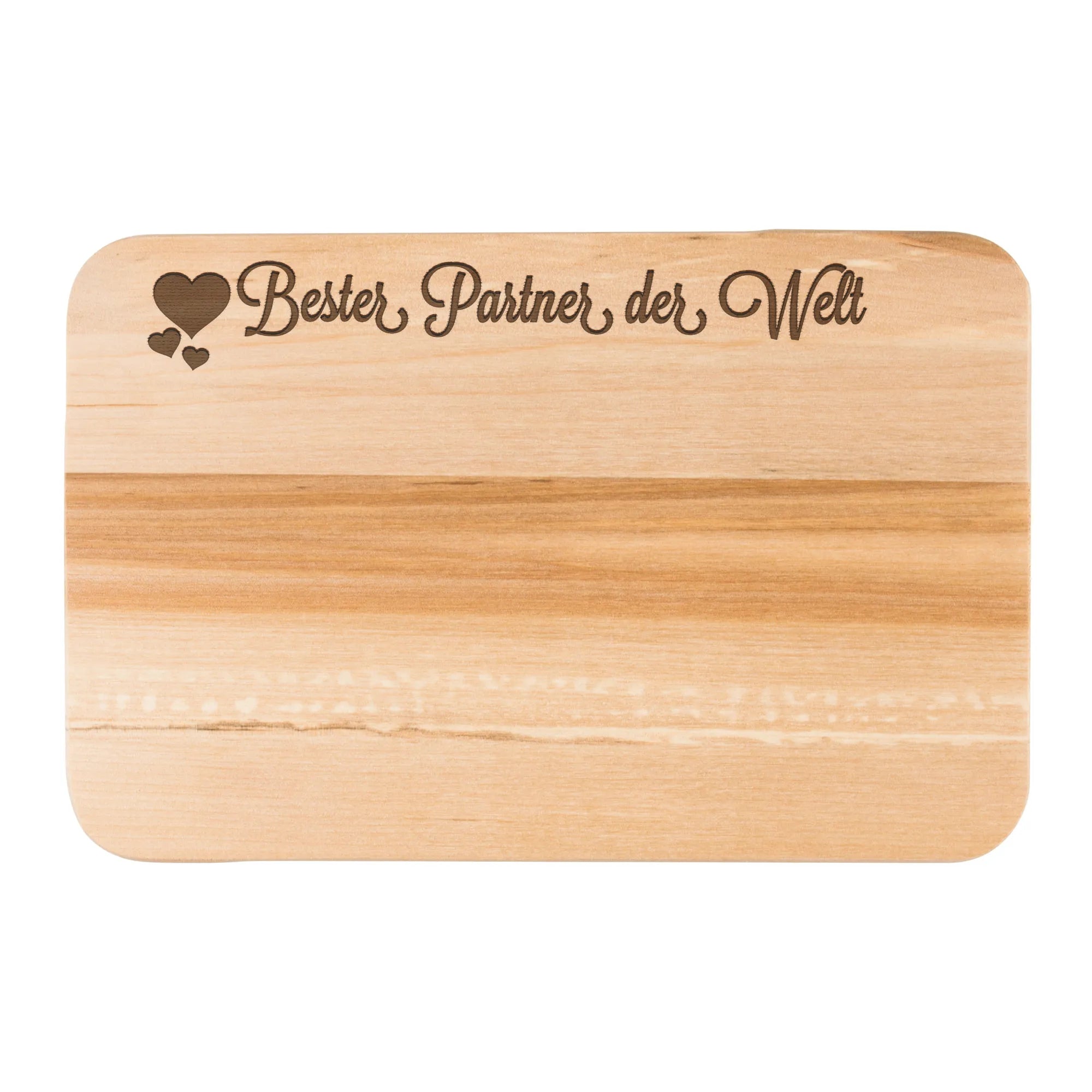 Das Frühstücksbrettchen ist aus hochwertigem Birkenholz gefertigt und misst 130 mm x 230 mm. Es ist robust, strapazierfähig und ideal für die Präsentation deiner liebsten Snacks und Frühstücksgerichte. Jeder Bissen wird zum Erlebnis, wenn du ihn auf einem so wundervollen Brettchen servierst. Die langlebige Lasergravur mit dem Slogan "Partner" und der floralen Blumenranke macht diese Küchenhilfe zu einem echten Hingucker und symbolisiert die Liebe zwischen dir und deinem Partner.