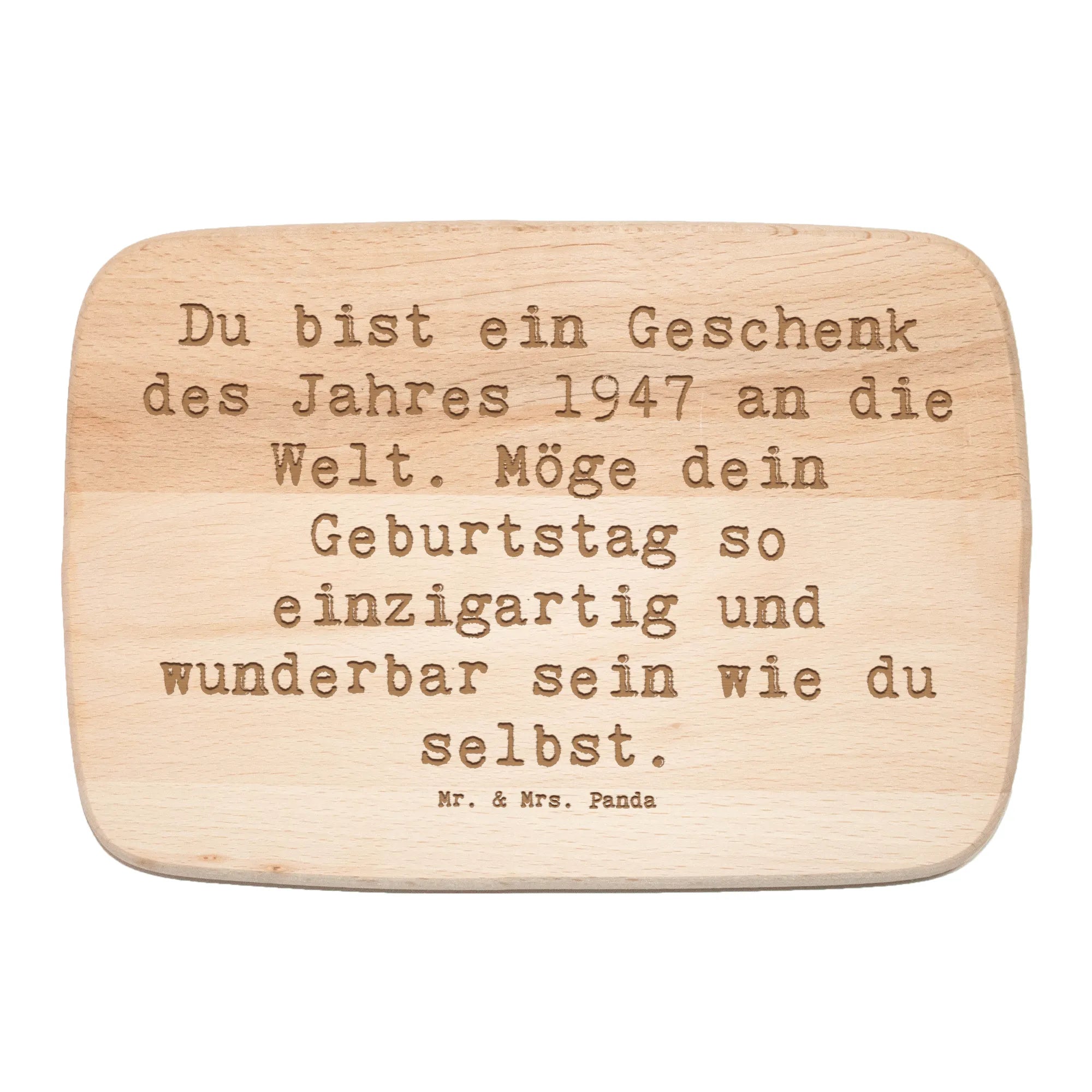 Das Frühstücksbrett von Mr. & Mrs. Panda mit dem Motiv "1947 Geburtstag" ist das perfekte Geschenk für alle, die einen besonderen Anlass feiern möchten. Egal ob Du einem lieben Menschen zum Geburtstag gratulieren oder selbst in Erinnerungen schwelgen möchtest, dieses edle Frühstücksbrett erzählt eine Geschichte. Wusstest Du, dass 1947 ein Jahr voller legendärer Anfänge war? Mit der Gravur "1947, ein Jahr legendärer Anfänge. Möge Ihr Geburtstag ebenso spektakulär sein!" wird jeder Frühstückstisch zu etwas ganz Besonderem!