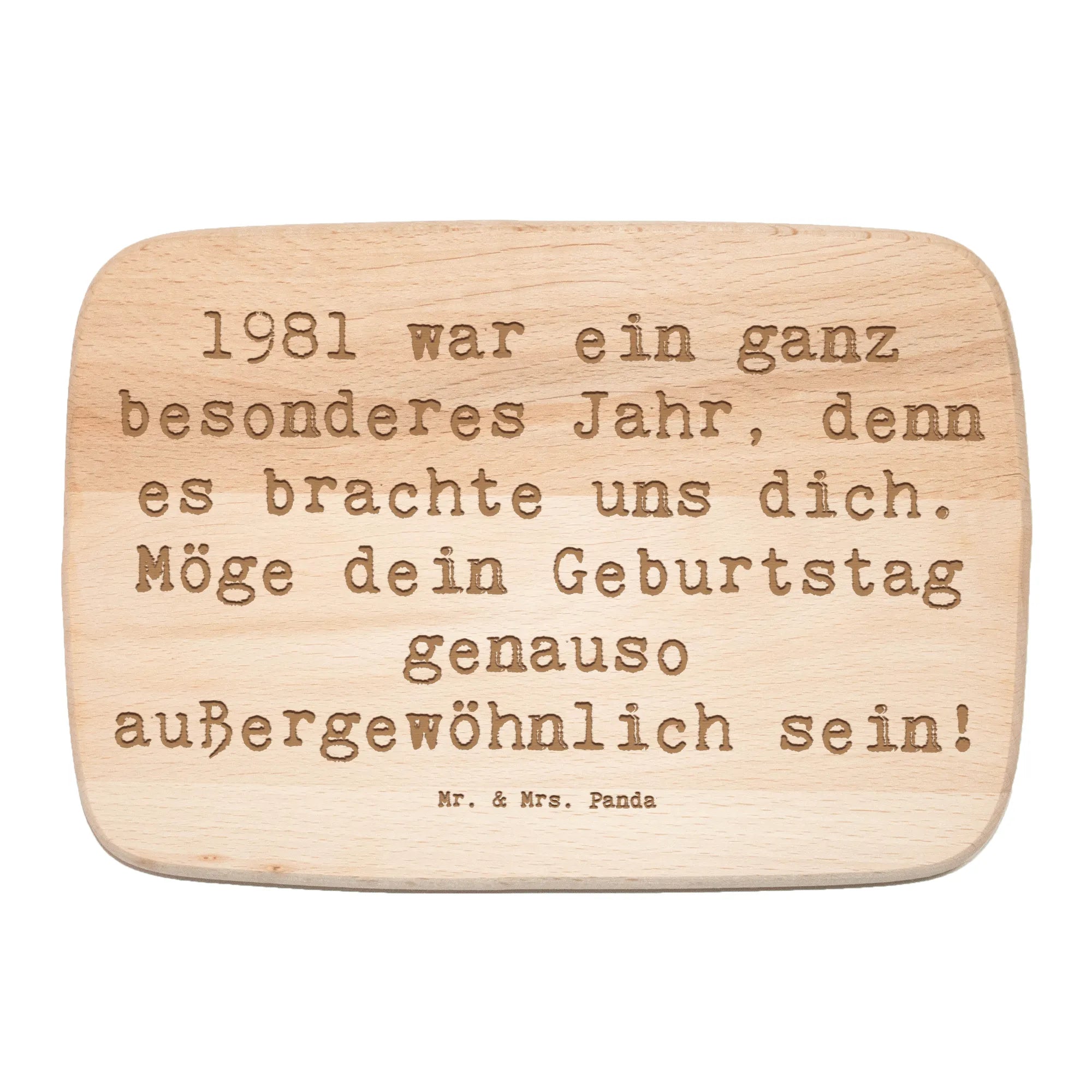 Das Frühstücksbrett mit dem besonderen Motiv "1981 Geburtstag" von Mr. & Mrs. Panda ist das perfekte Geschenk für alle, die in diesem Jahr das Licht der Welt erblickt haben. Es wurde liebevoll aus robustem Birkenholz gefertigt und mit einer langlebigen Lasergravur versehen.